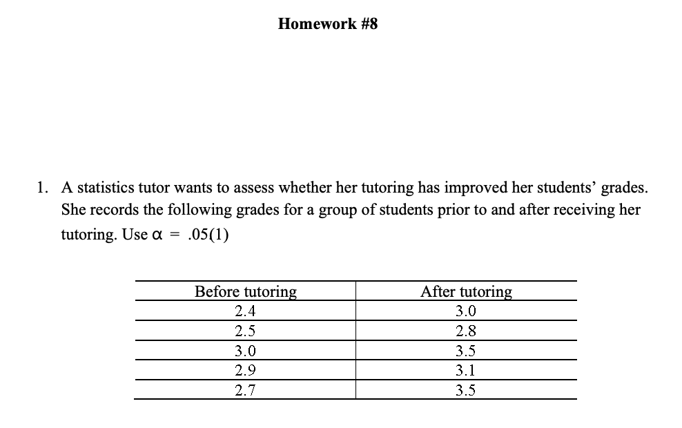 Homework #8 1. A statistics tutor wants to assess whether her tuto...