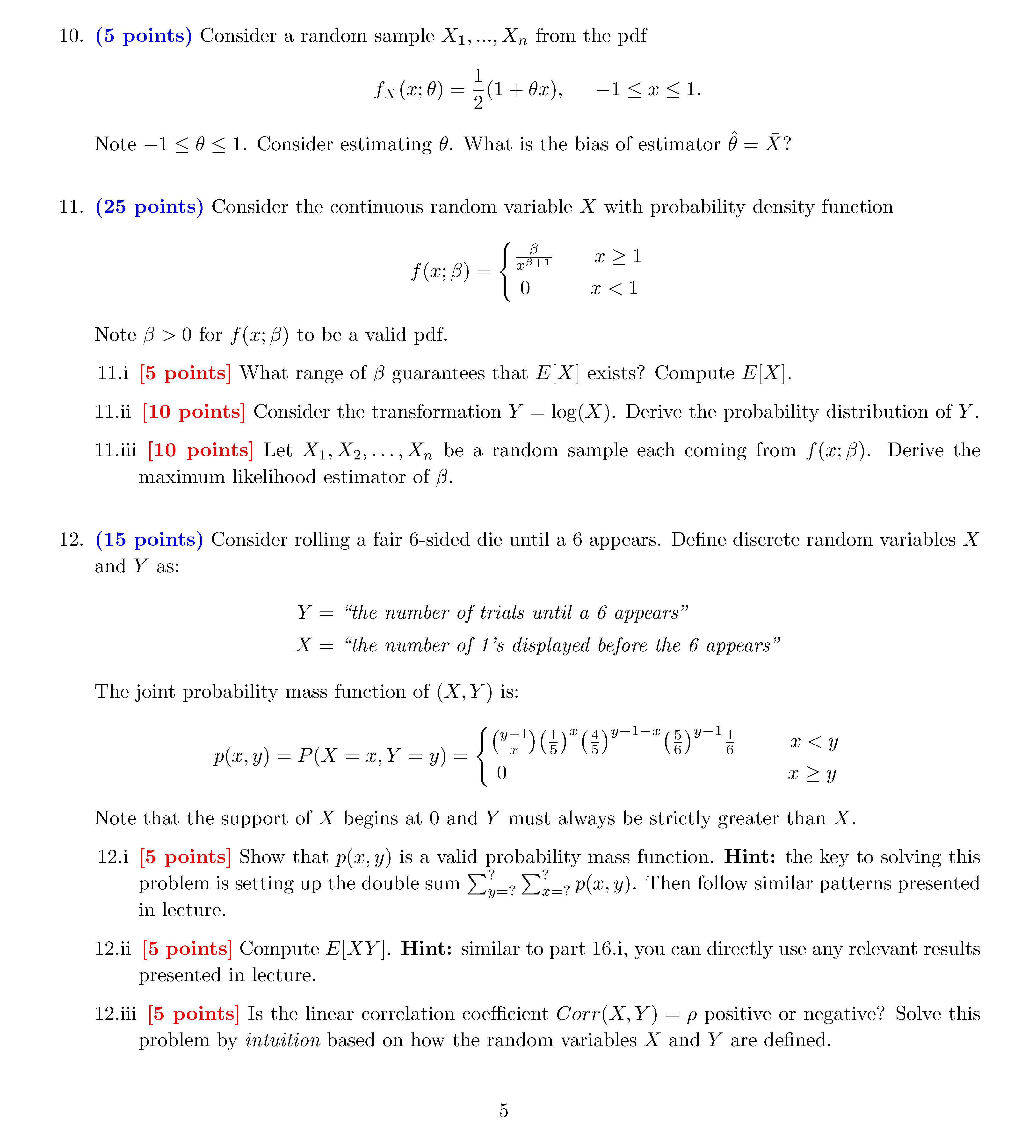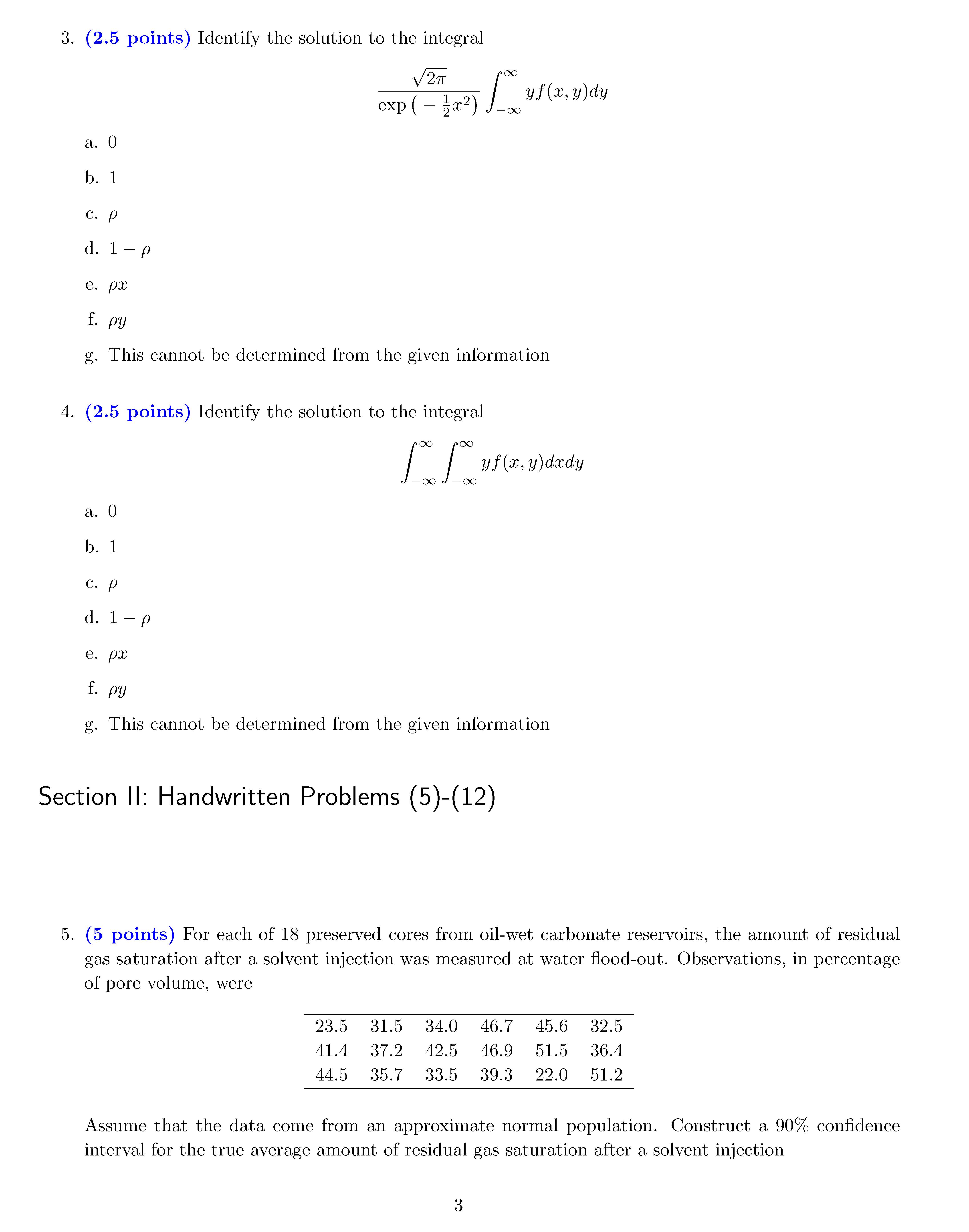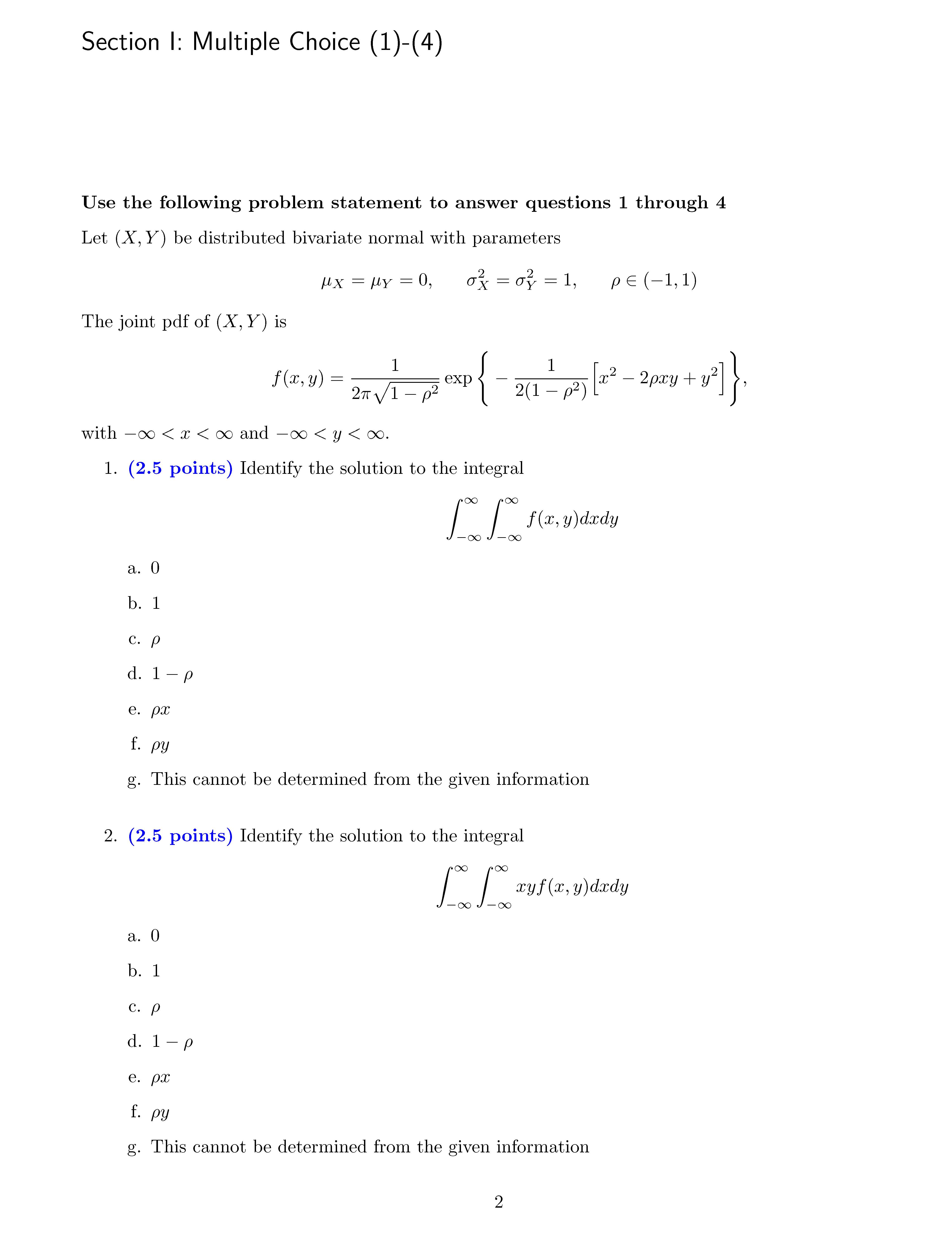 Section I: Multiple Choice (1)-(4) For this section (exercises (1)...