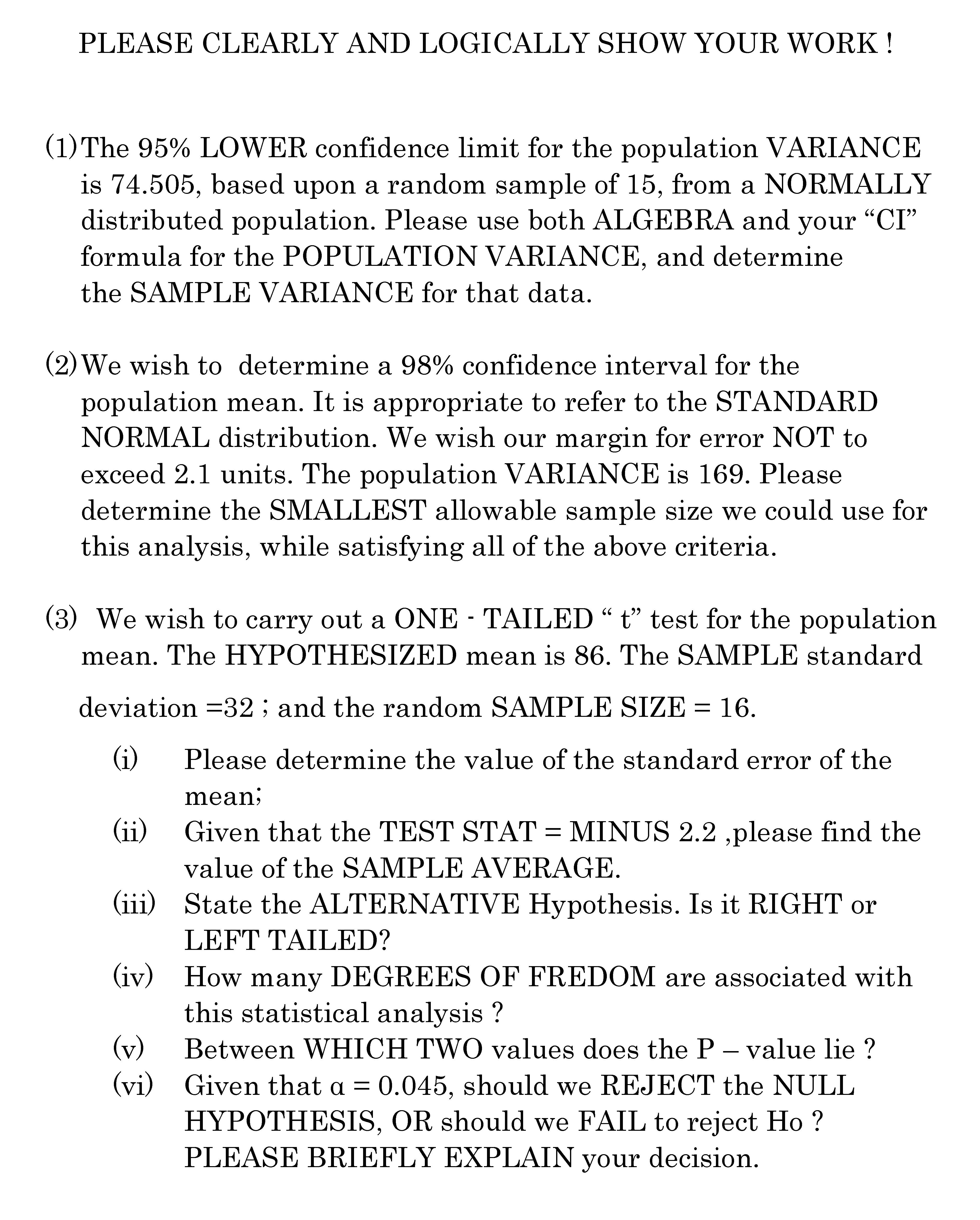 PLEASE CLEARLY AND LOGICALLY SHOW YOUR WORK ! (1) The 9...