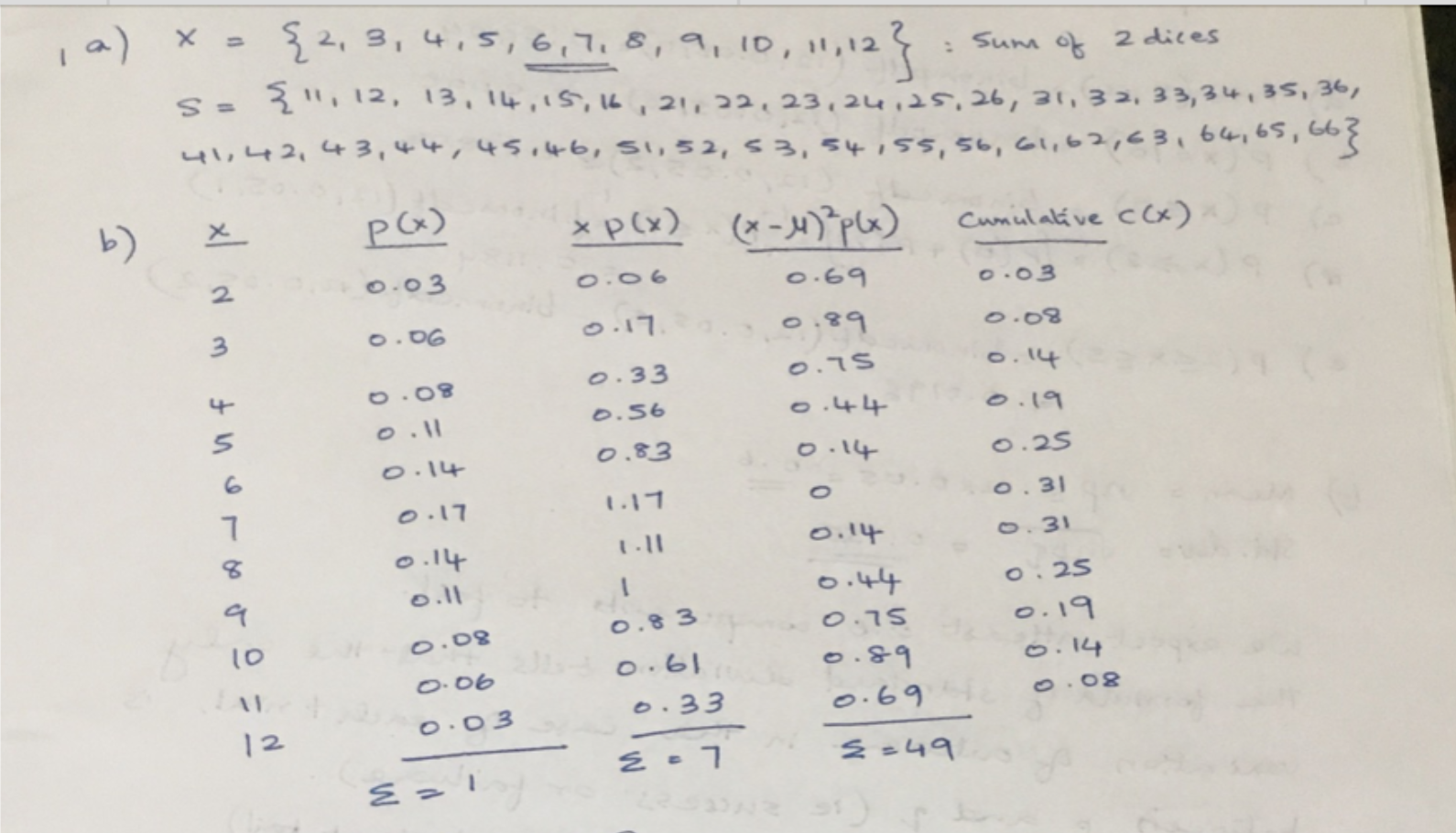 1. Two dice are tossed at random a) Create a sample space matrix...