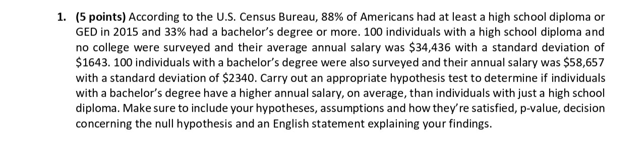 1. (5 points) According to the U.S. Census Bureau, 88% of Americans...