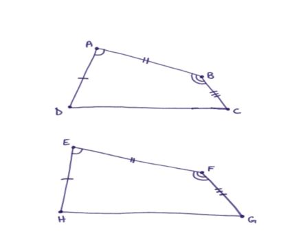 Given are two convex quadrilaterals, where AD~=EH, <A ~= <E, ...