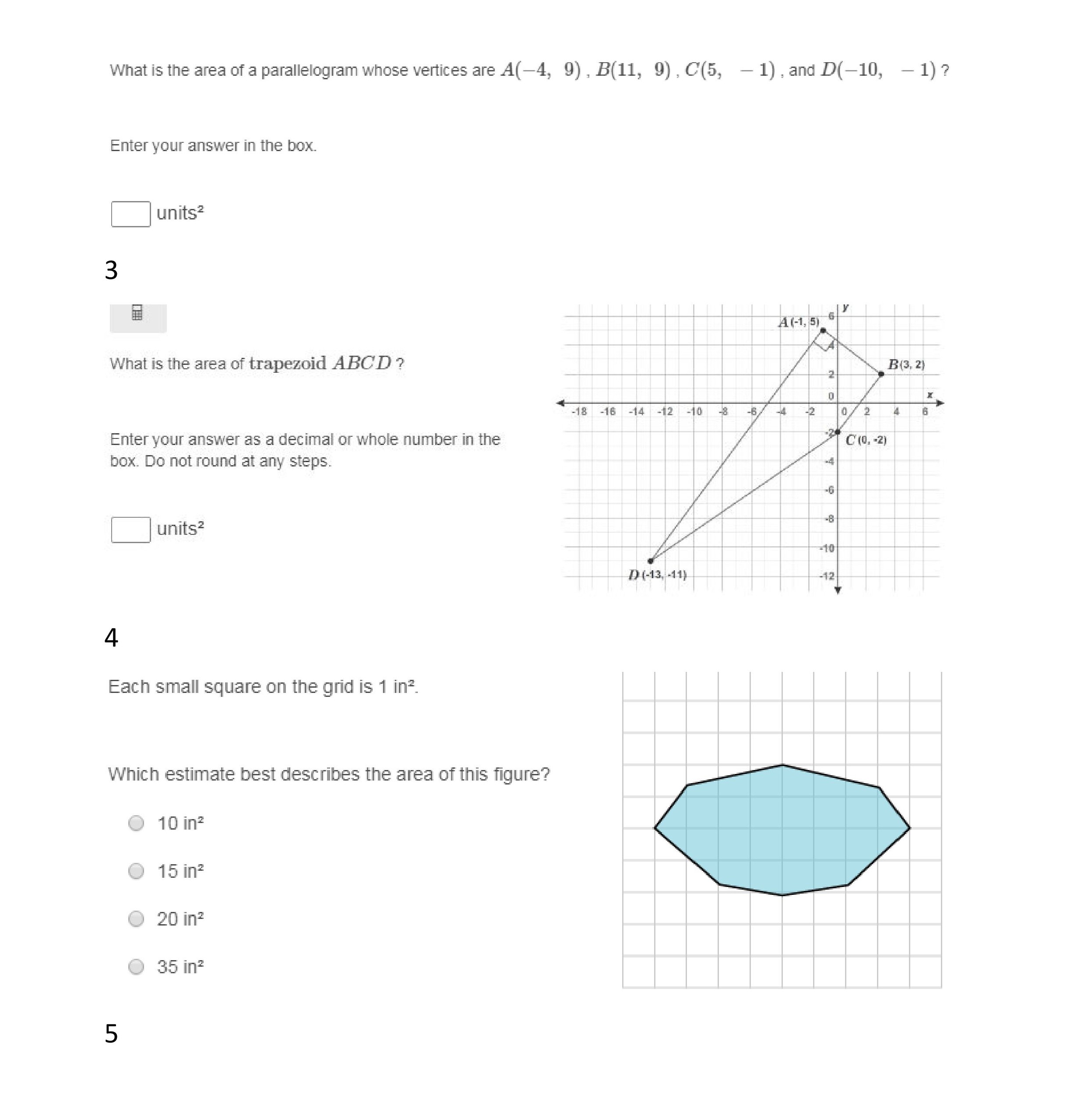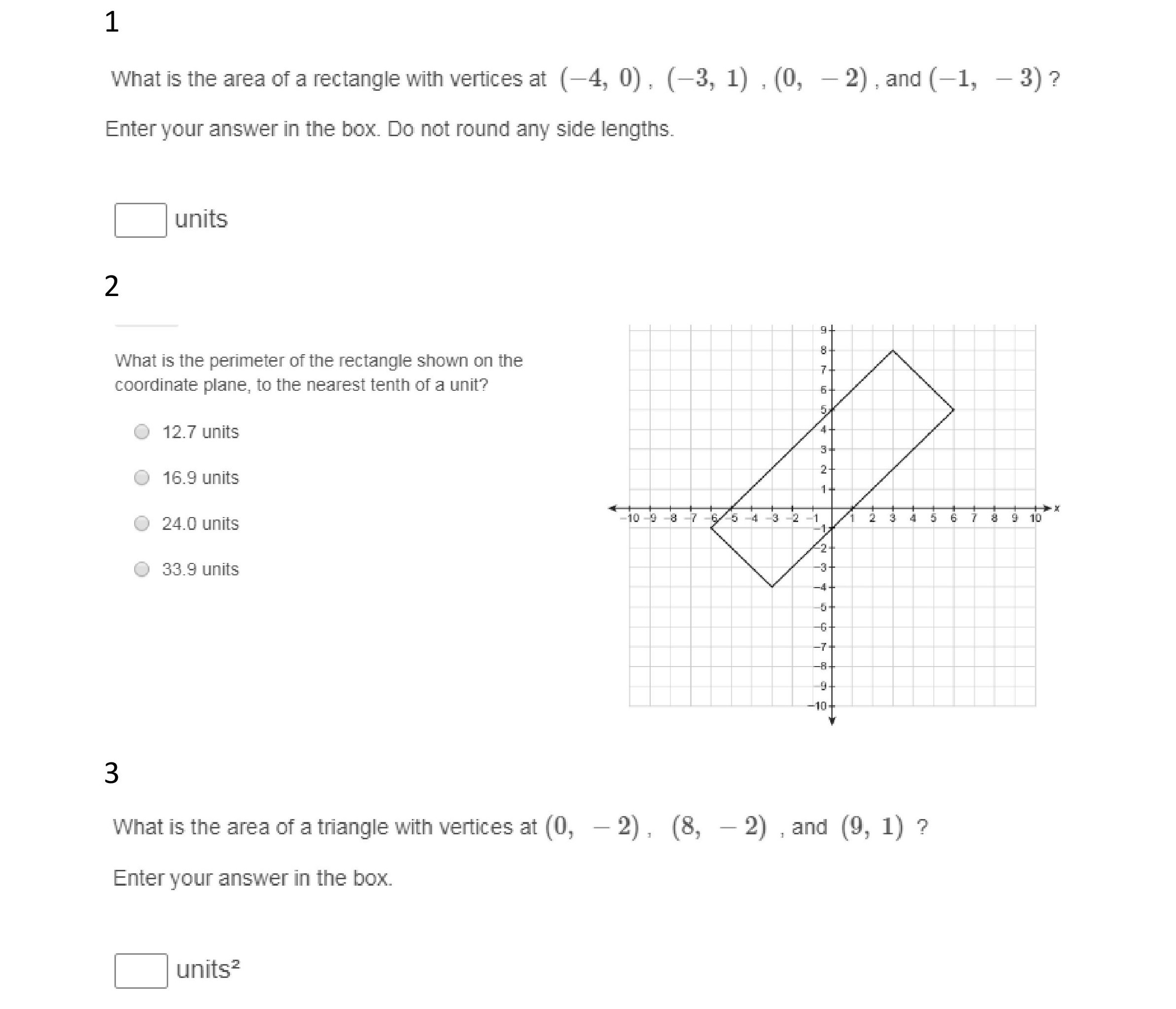 1 What is the area of a rectangle with vertices at (-4, 0) : (-3, ...