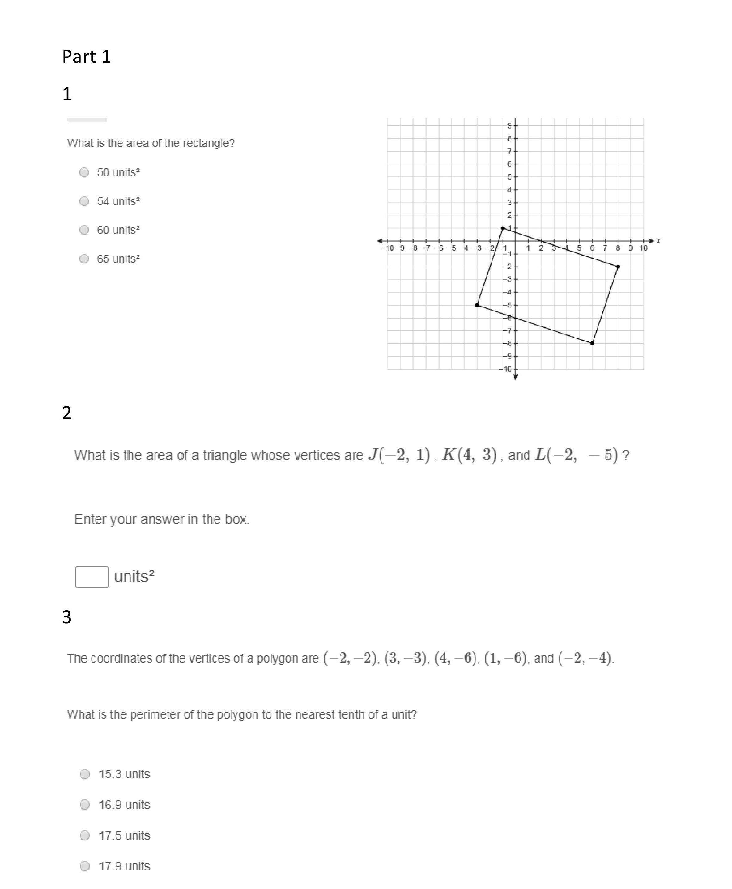 Part 1 1 9 What is the area of the rectangle? 8 7 50 units2 ...