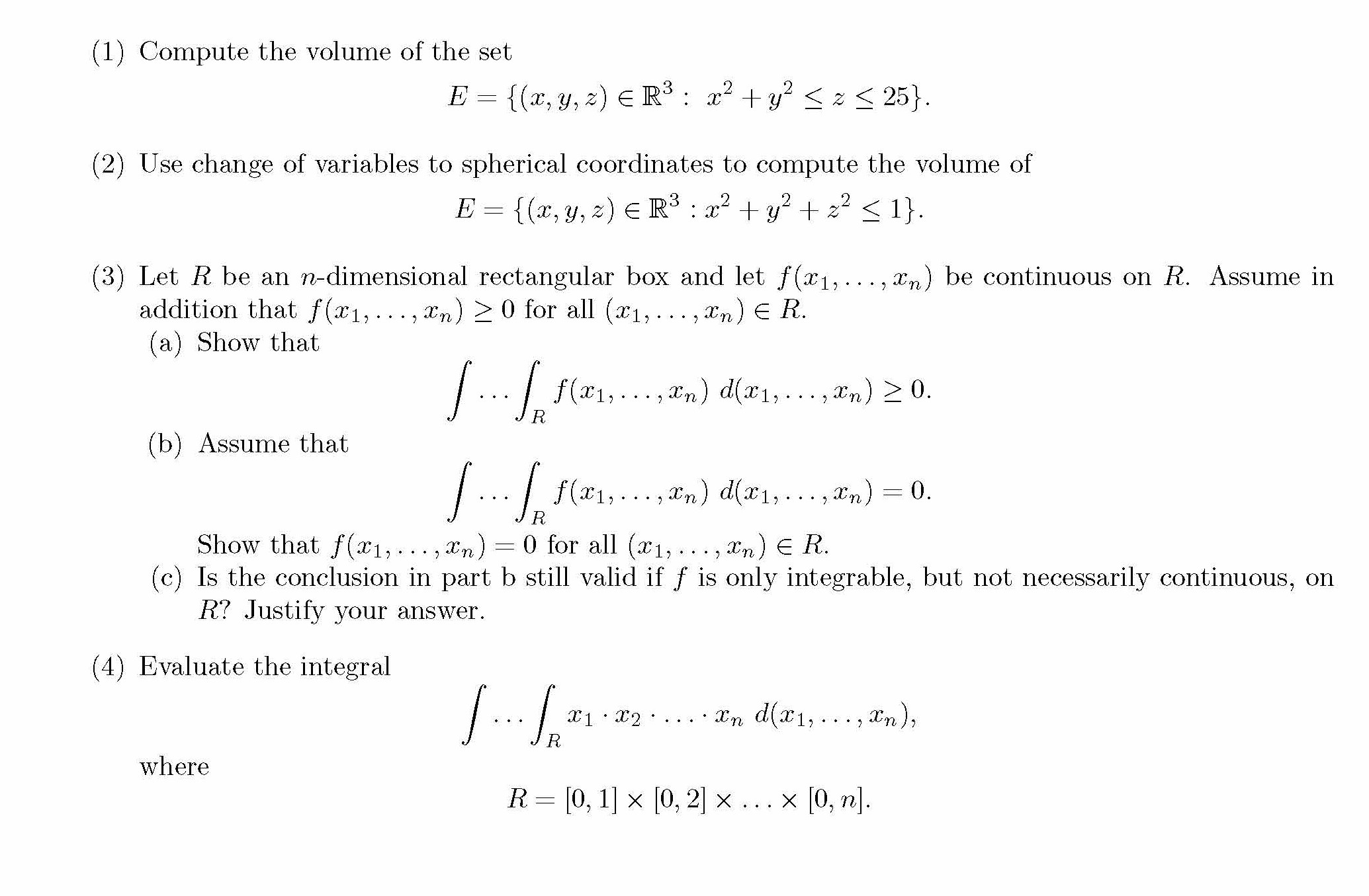 (1) Compute the volume of the set E = {(x,y,x) € R3: x2 + y2...