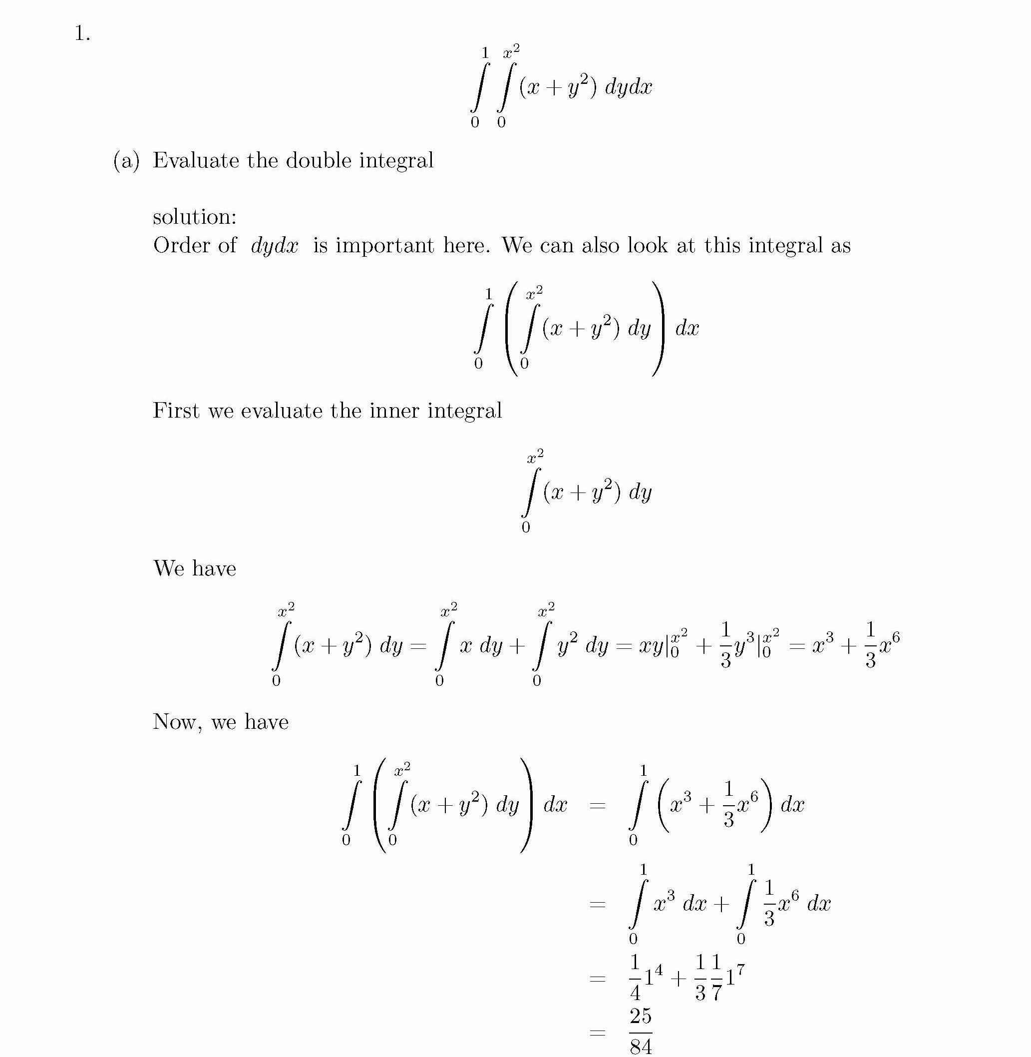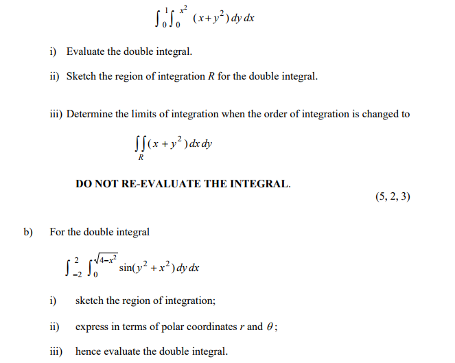 10.10 (x+y2) dy dx i) Evaluate the double integral. ii) Sketch th...