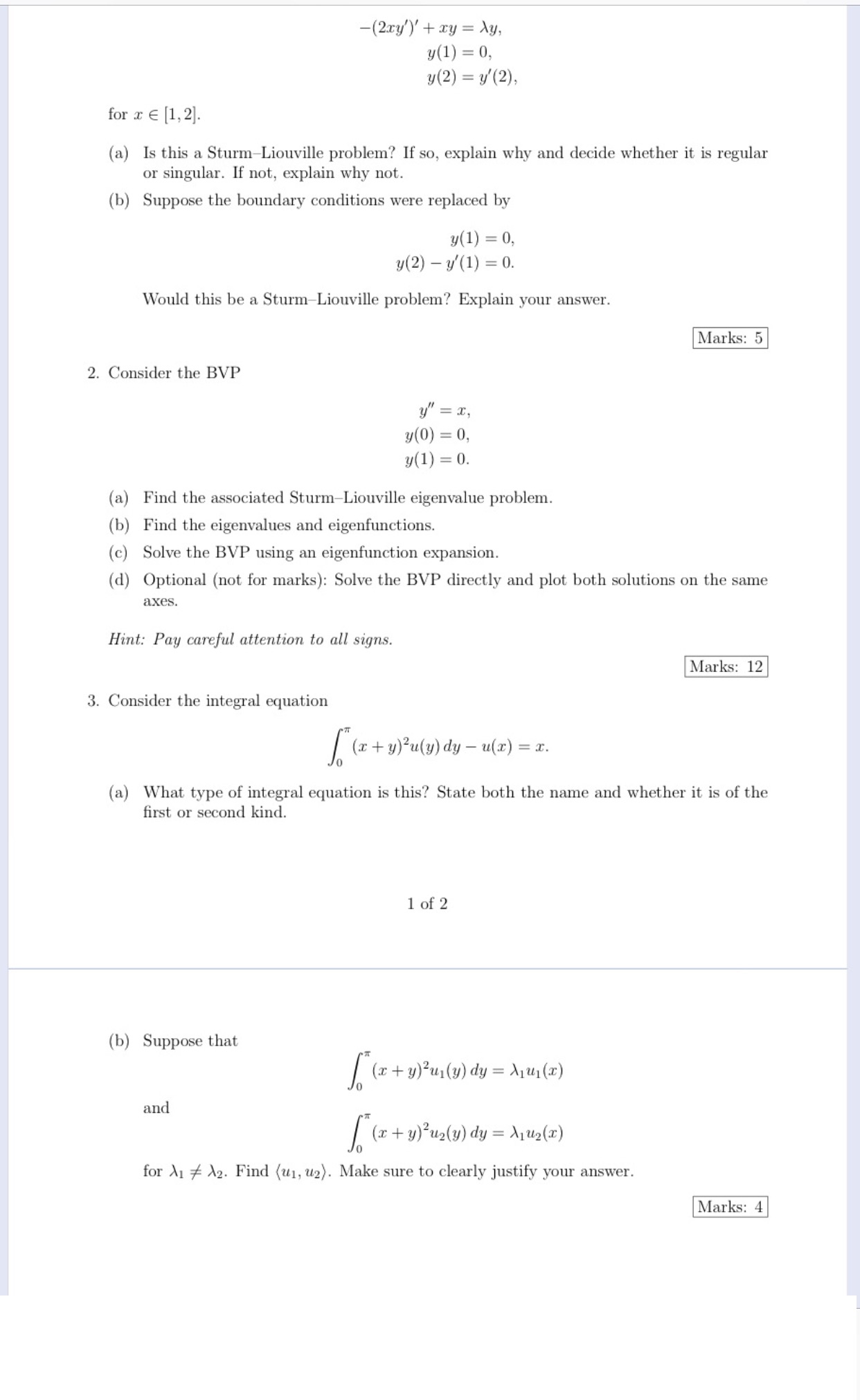 -(2xy')'+ry= = Xy, y(1)=0, y(2)=y((2), = for x E [1,2]. (a) Is...