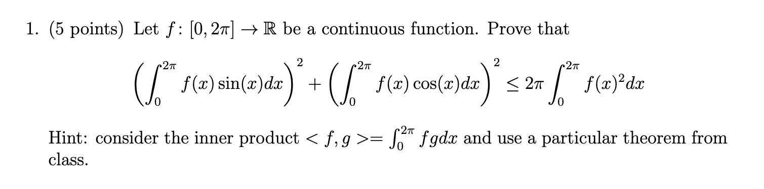 1. (5 points) Let f: [0, 2] R be a continuous function. Prove that...