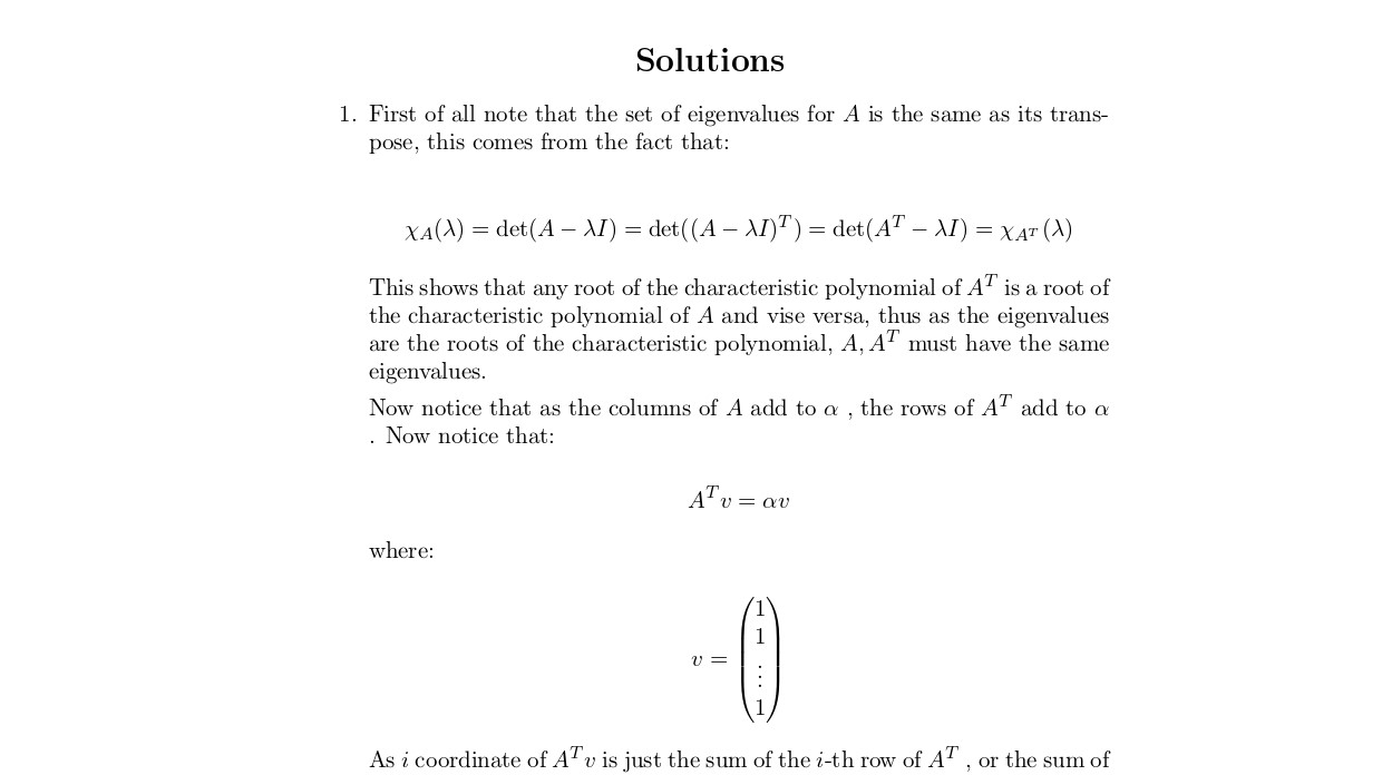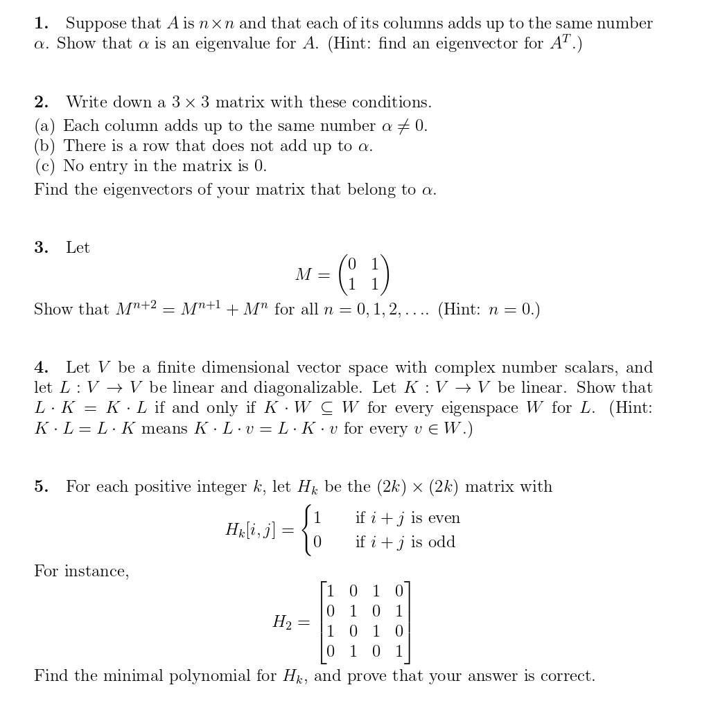 1. Suppose that A is nxn and that each of its columns adds up to th...