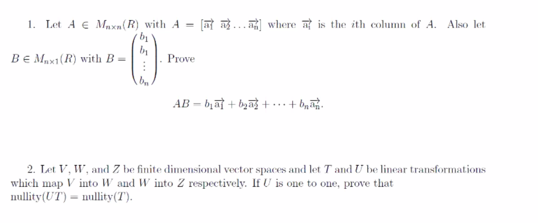 1. Let A E Mnxn(R) with A a where at is the ith column of A. Also l...