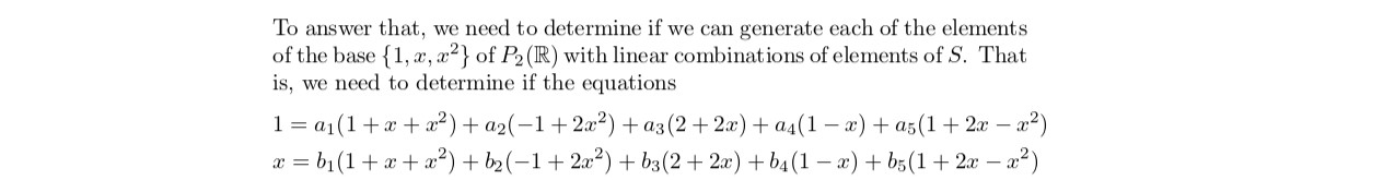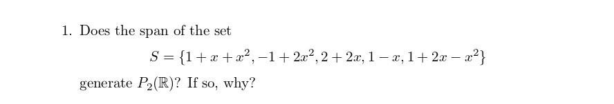 1. Does the span of the set S{1+x+x2,-12x2,22x,1-x,12x-x generate...