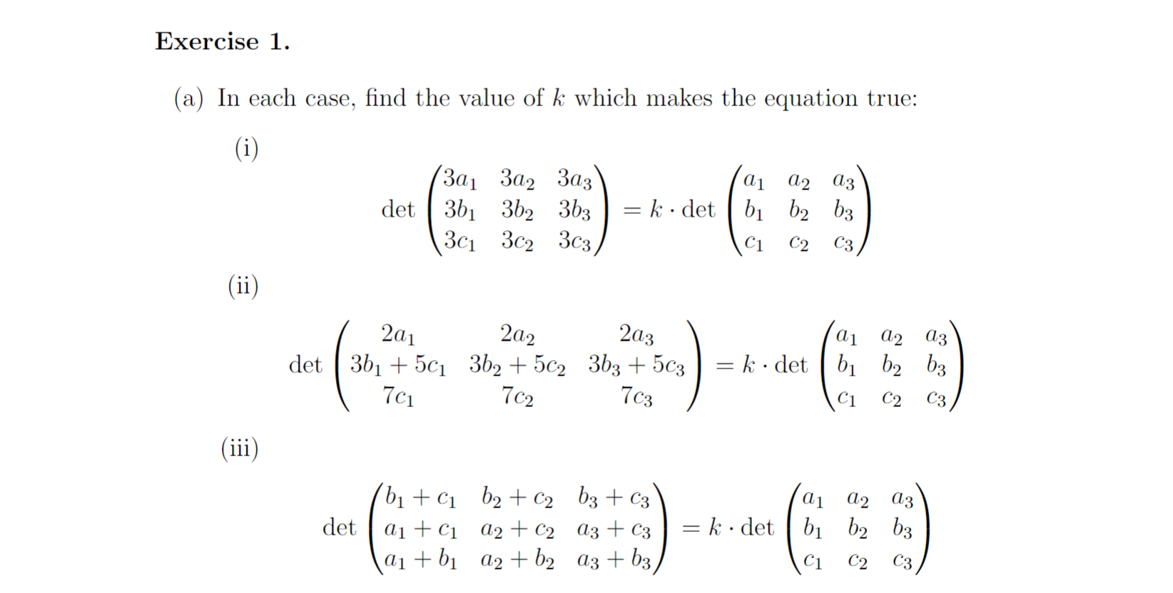 Exercise 1. (a) In each case, find the value of k which makes the...