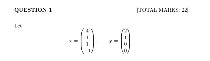 QUESTION 1 [TOTAL MARKS: 22] Let X -(i) y = (c) Again given...