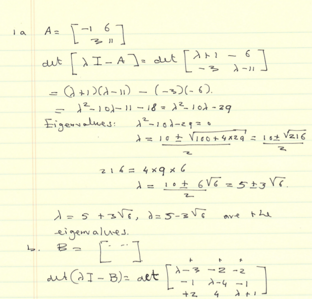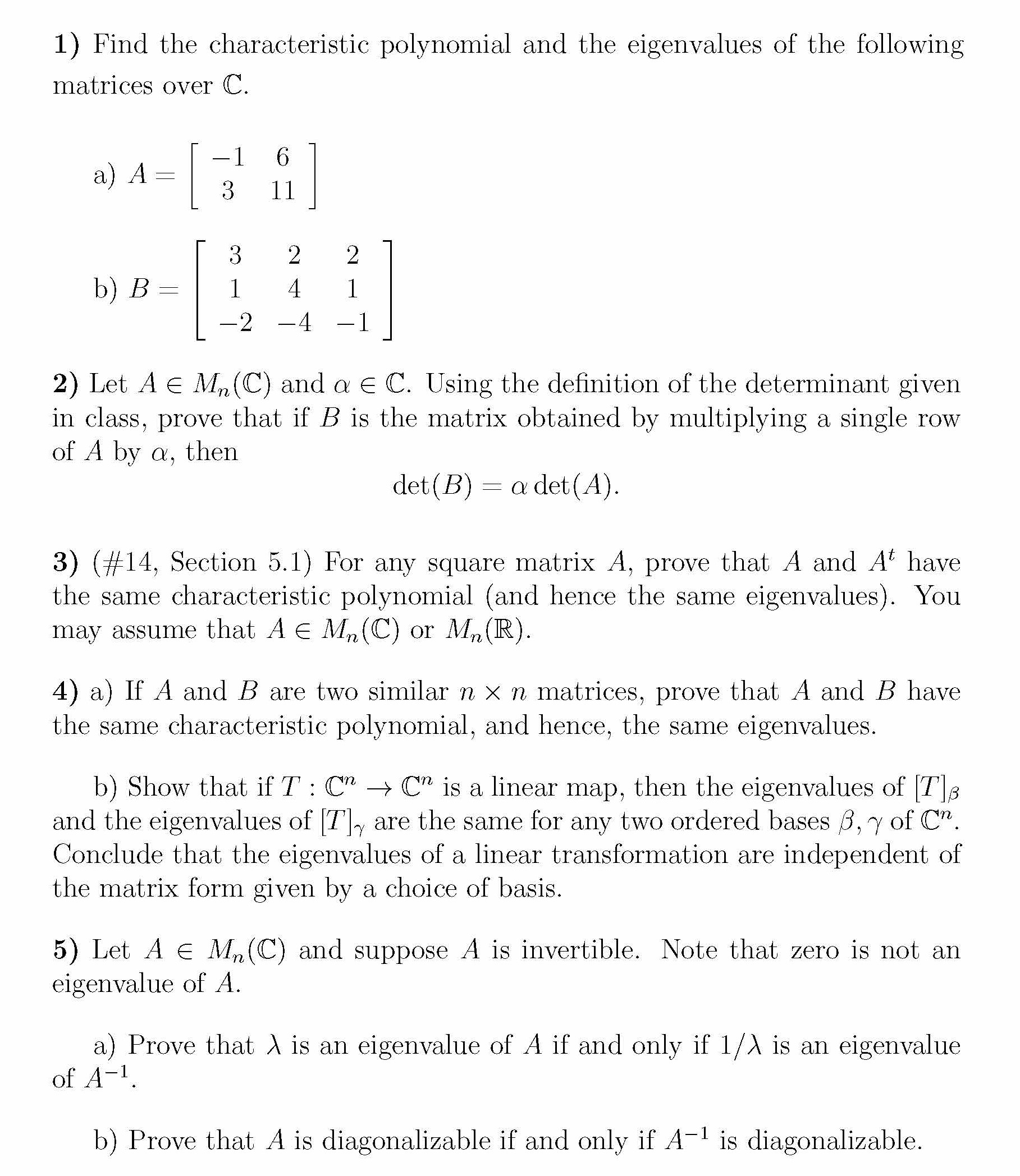 1) Find the characteristic polynomial and the eigenvalues of the fo...