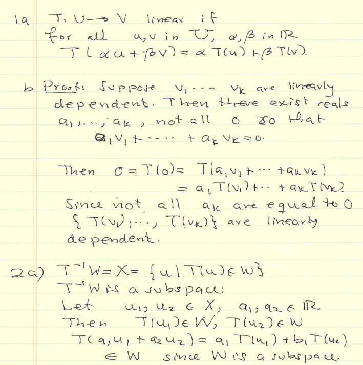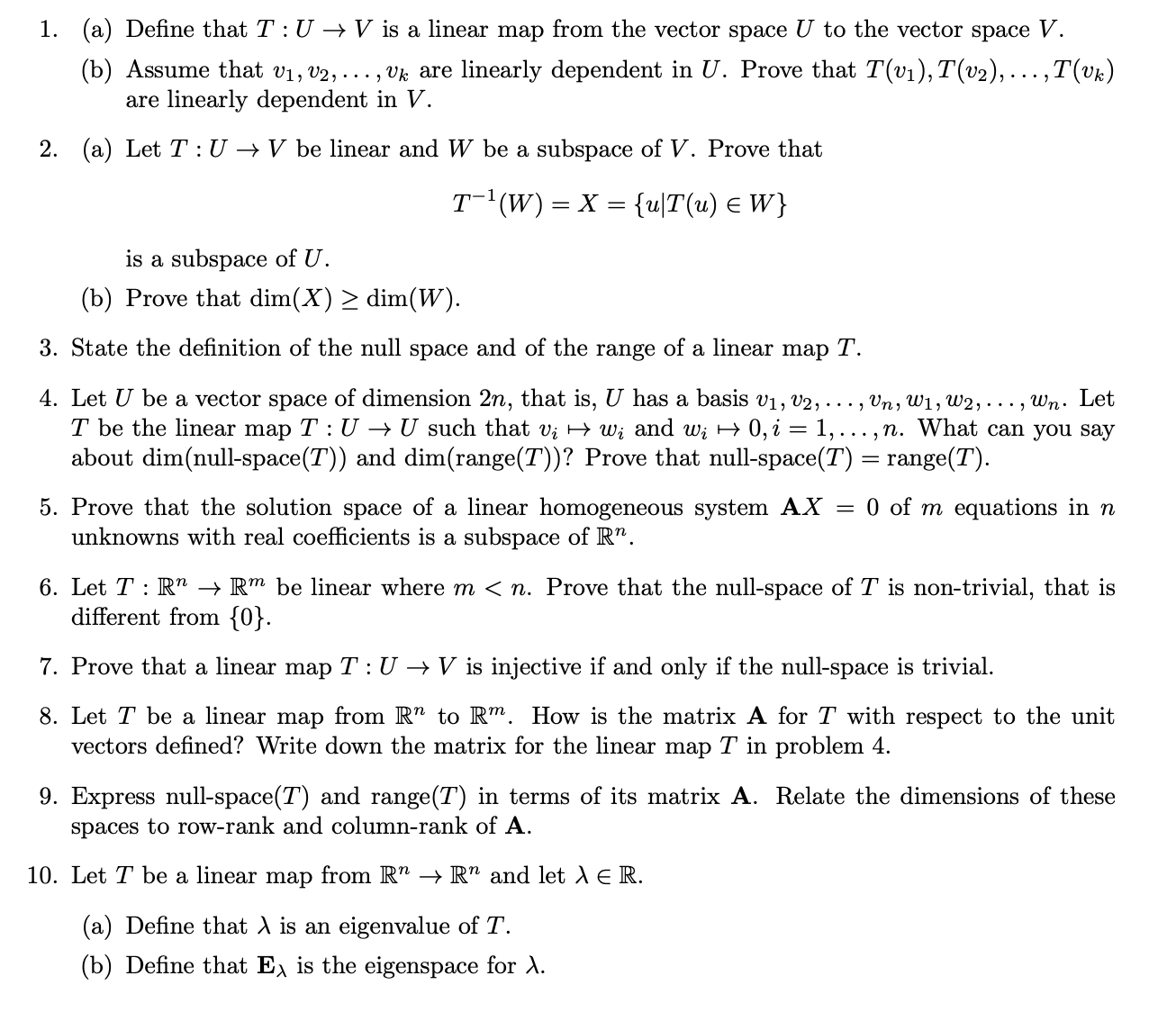 1. (a) Define that T U - V is a linear map from the vector space U...