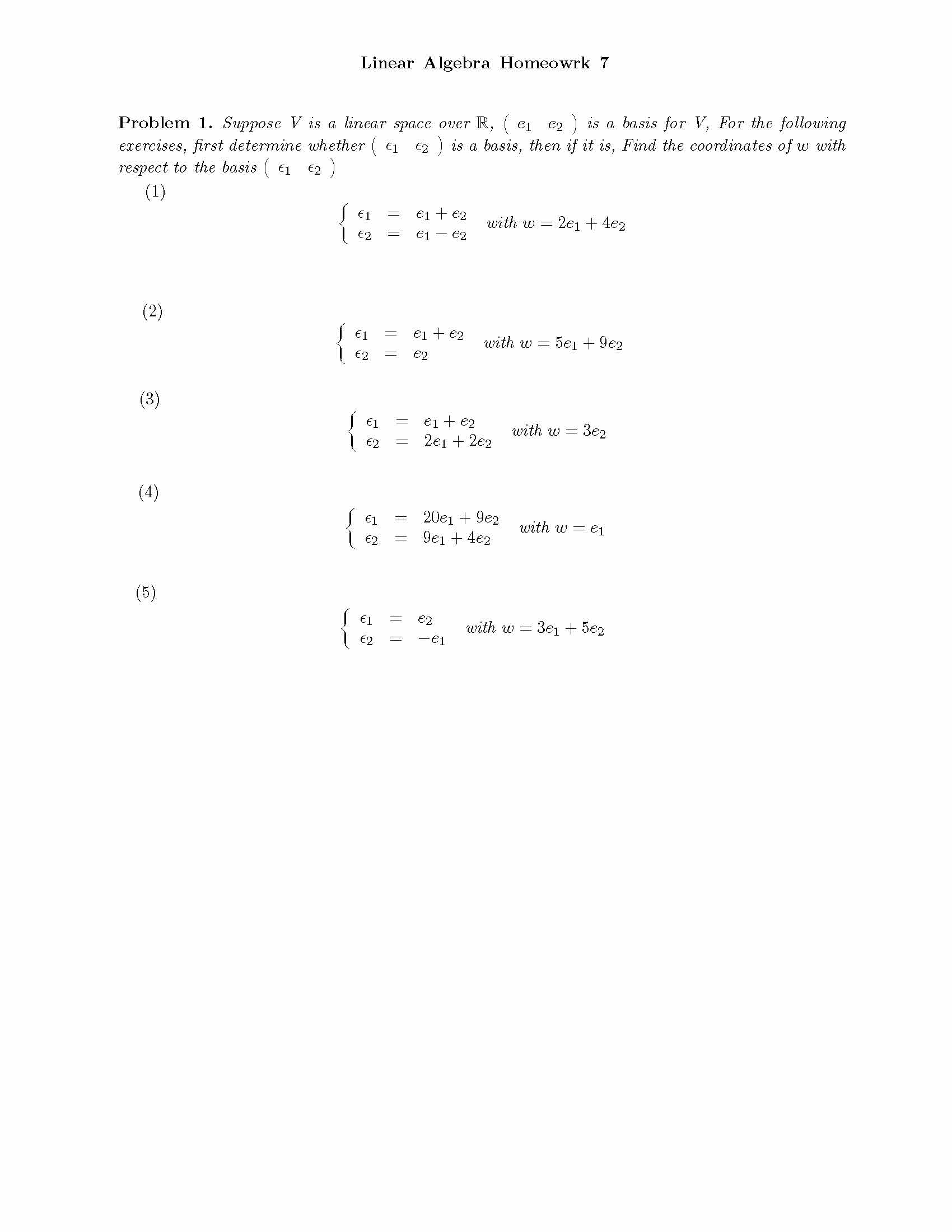 Linear Algebra Homeowrk 7 Problem 1. Suppose V is a linear space o...