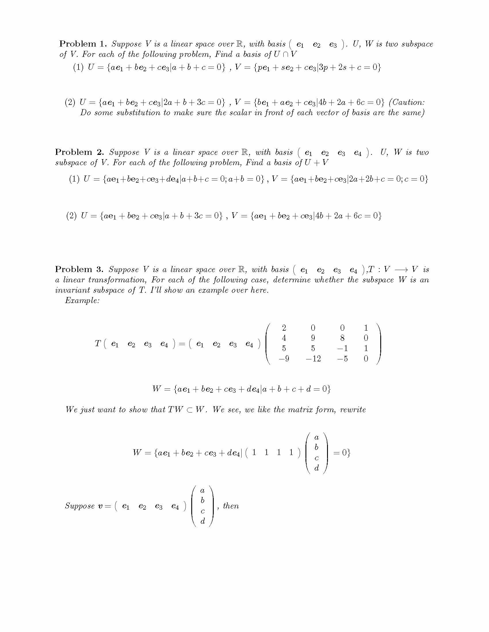 Problem 1. Suppose V is a linear space over R, with basis e1 e2 e3...