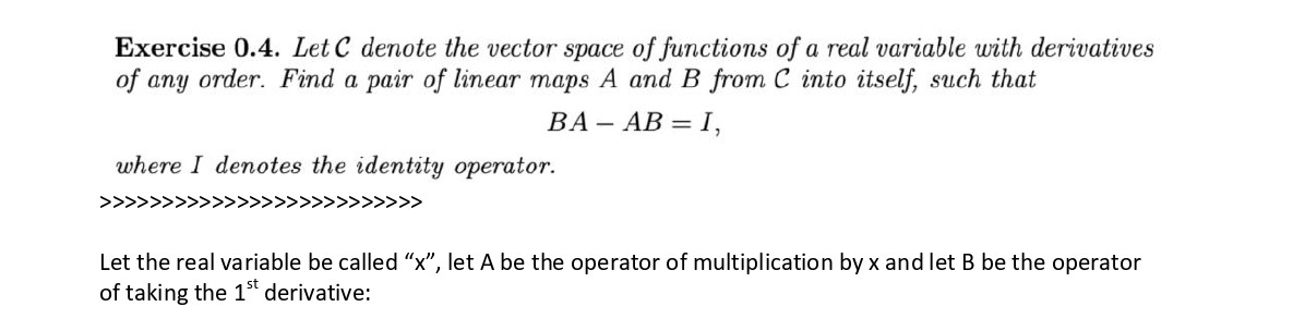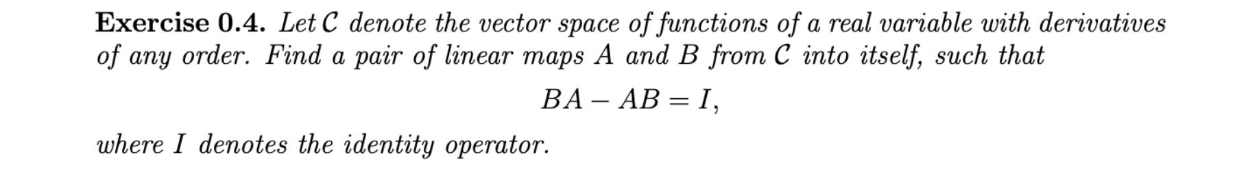 Exercise 0.4. Let C denote the vector space of functions of a real...