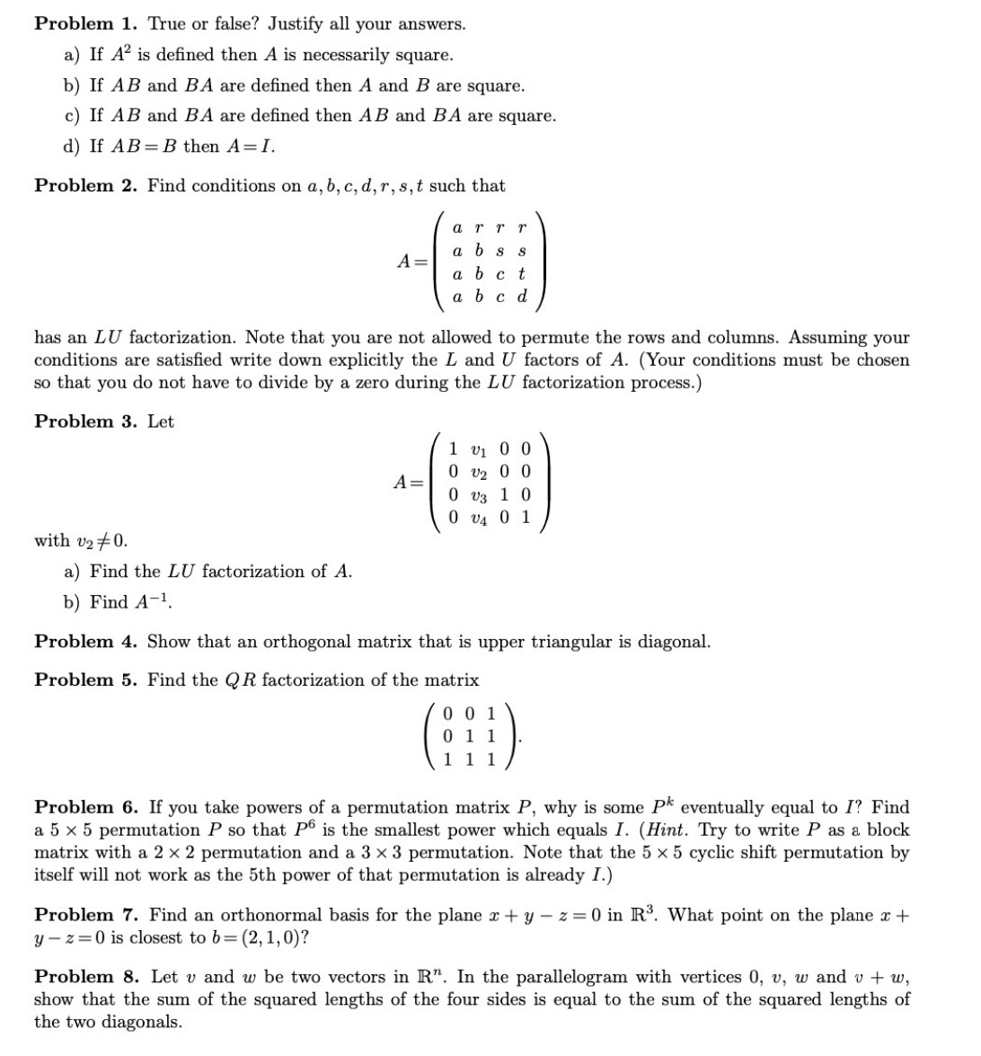 Problem 1. True or false? Justify all your answers. a) If A2 is de...