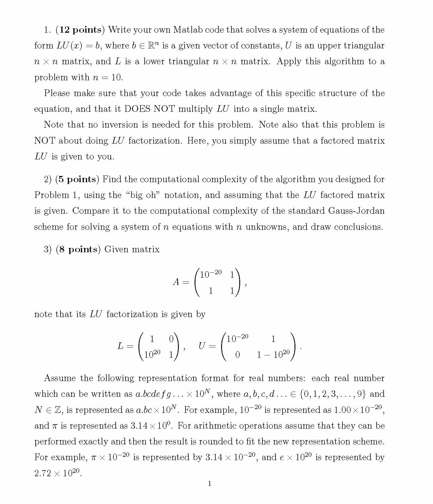 1. (12 points) Write your own Matlab code that solves a system of e...