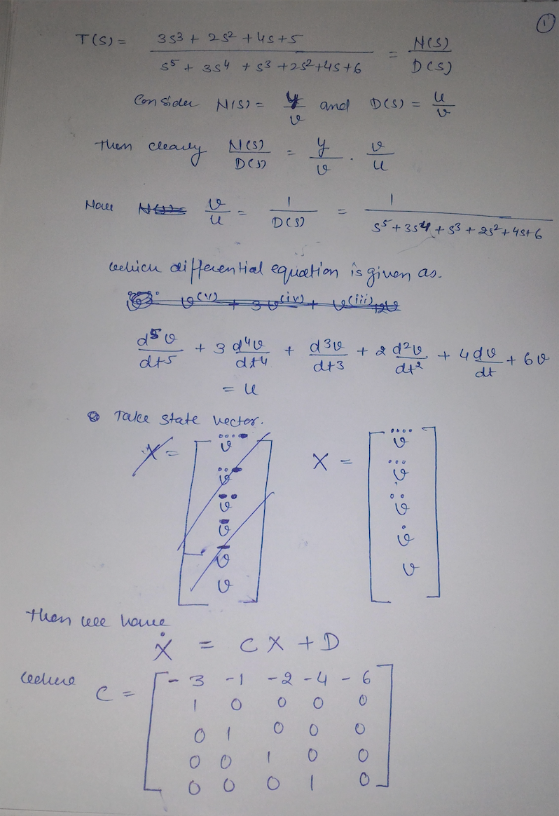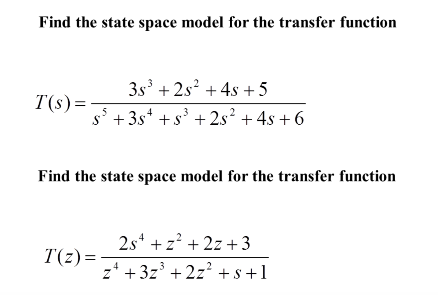 Find the state space model for the transfer function 3s3 + 2s2 +4s...