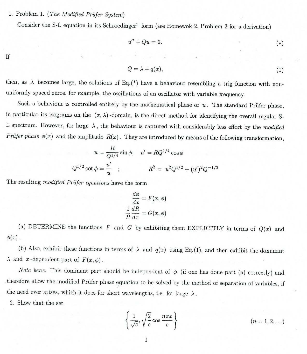 1. Problem 1. (The Modified Prüfer System) Consider the S-L equat...