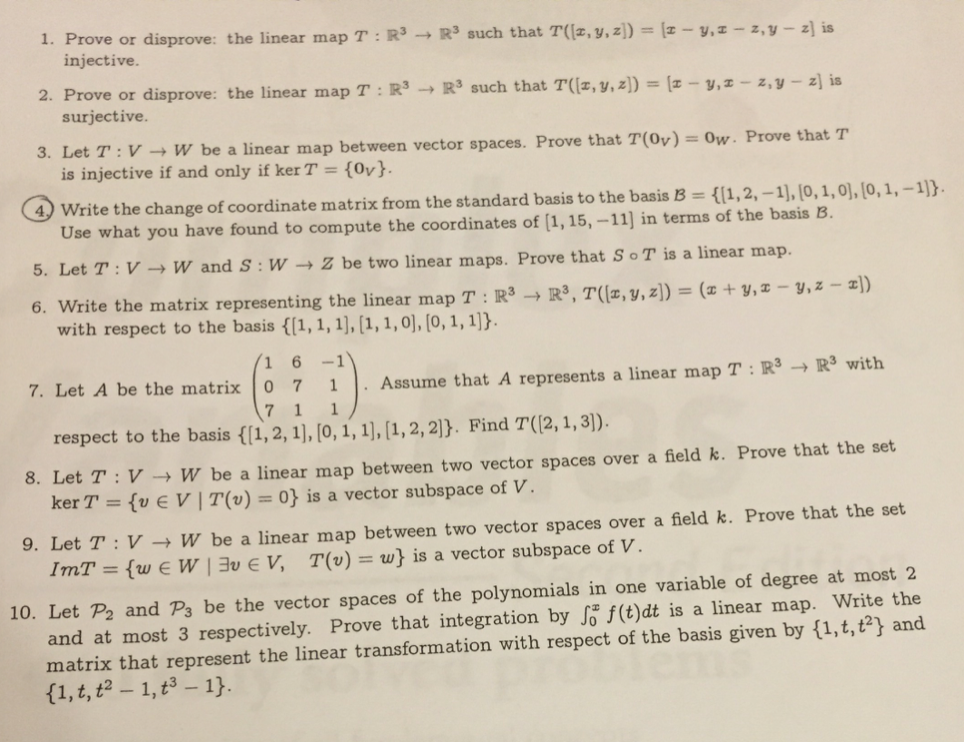 1. Prove or disprove: the linear map T : R³ R³ such that T(lz...