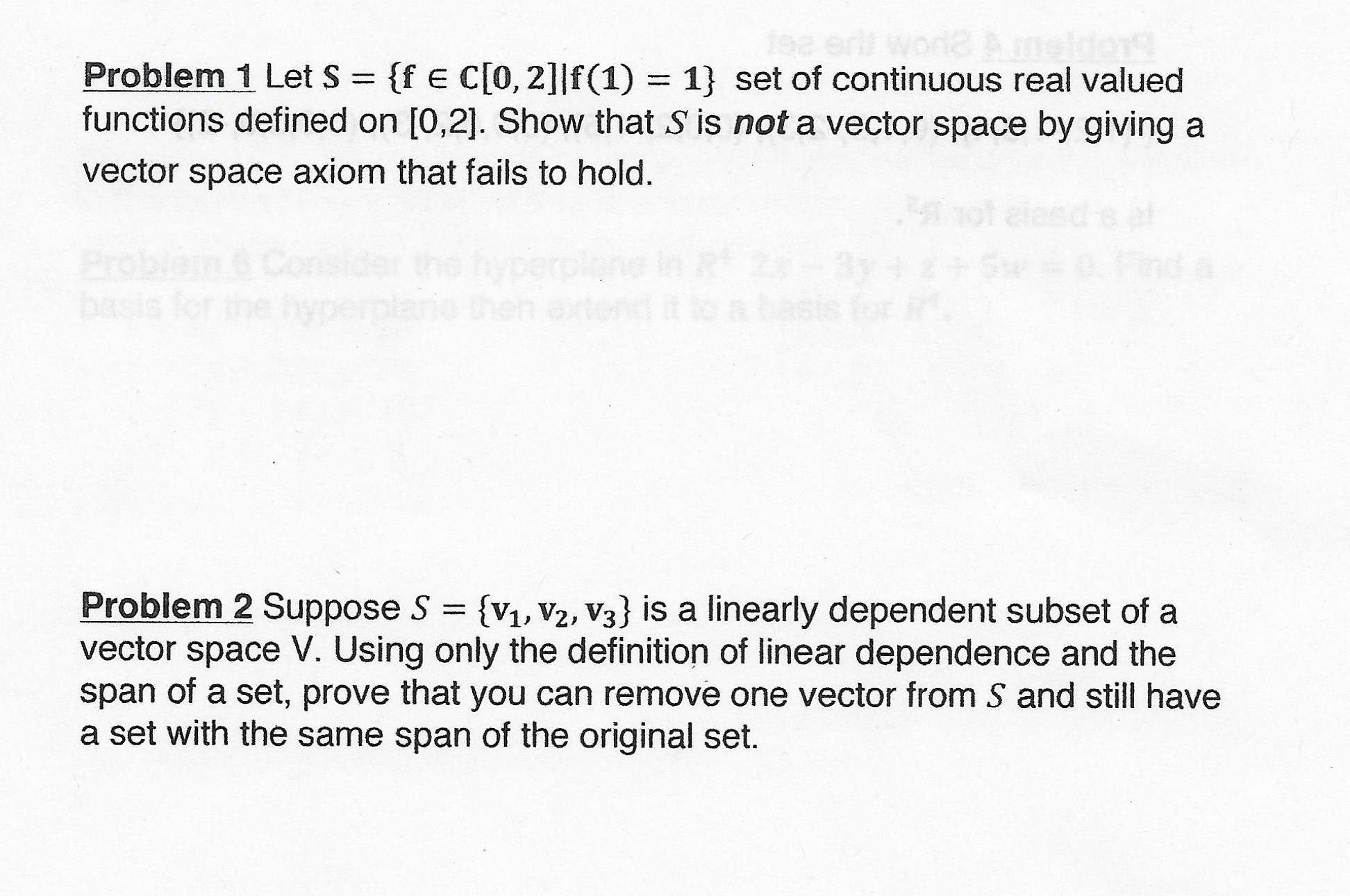 Problem 1 Let S = {f E C[0, 2]|f(1) = 1} set of continuous real val...