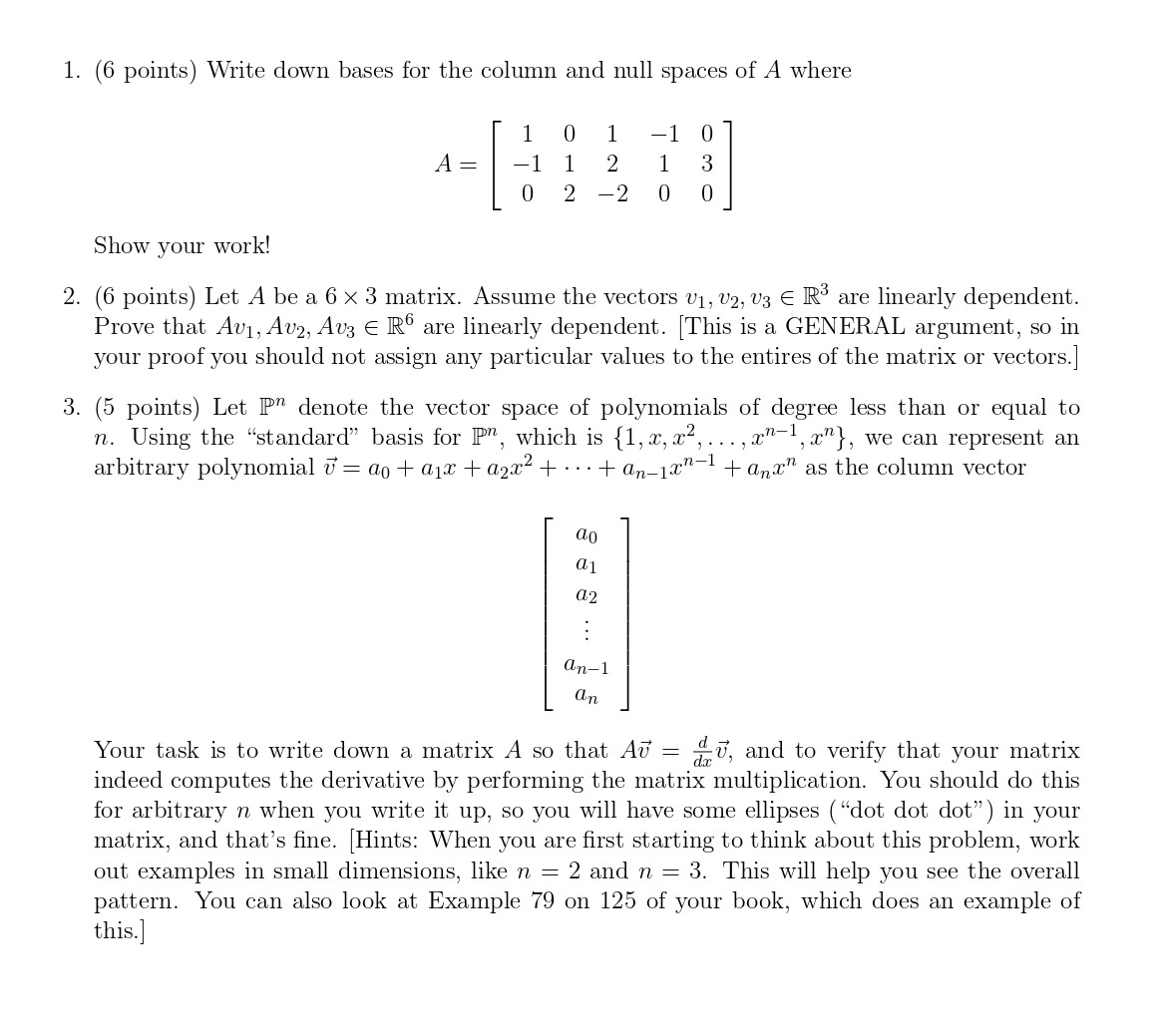 1. (6 points) Write down bases for the column and null spaces of A ...