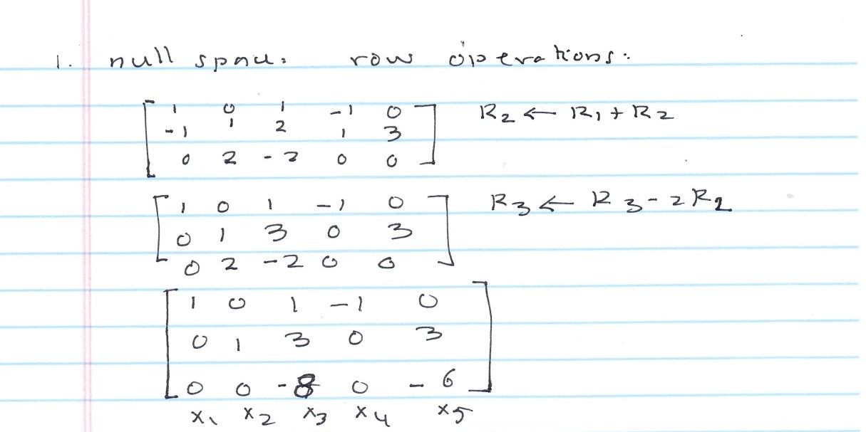 1. (6 points) Write down bases for the column and null spaces of A...