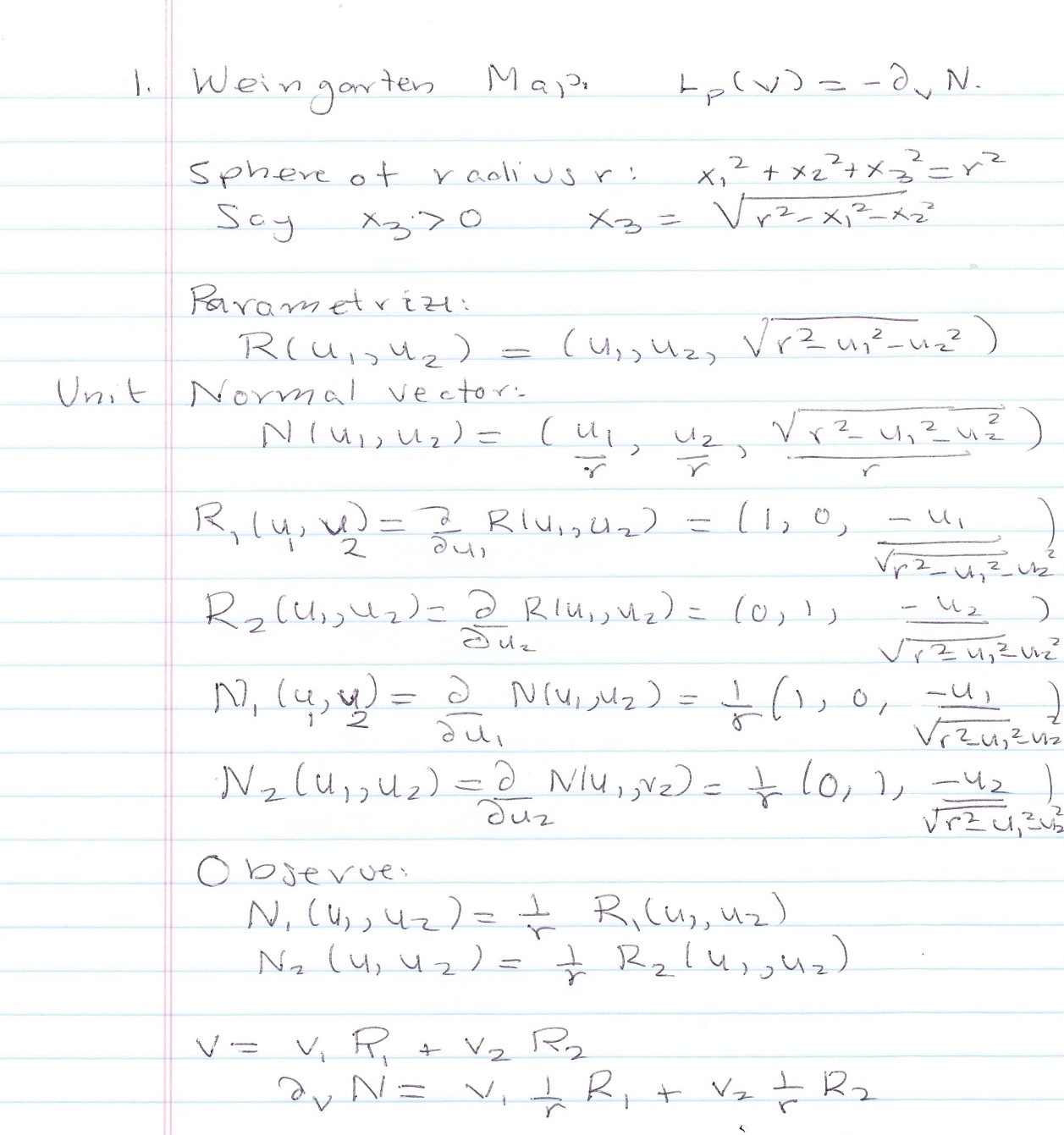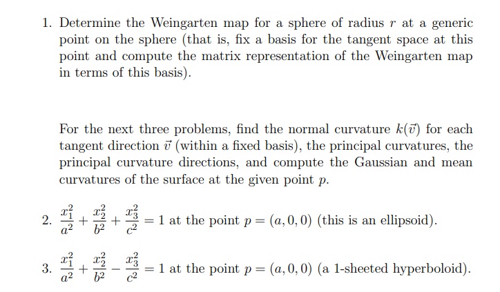 1. Determine the Weingarten map for a sphere of radius r at a gener...