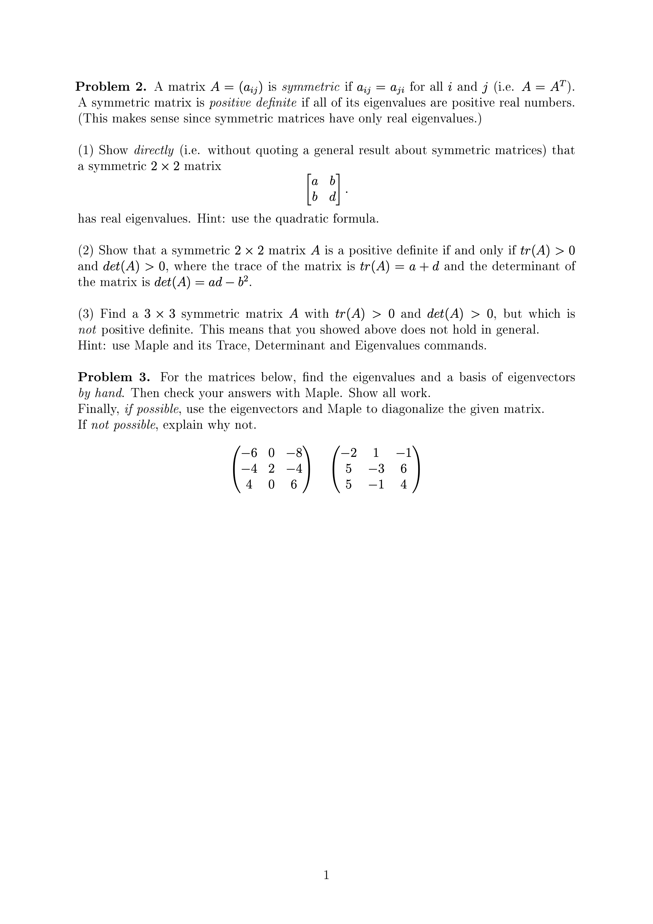 Problem 2. A matrix A = (aij) is symmetric if aij = aji for all i a...