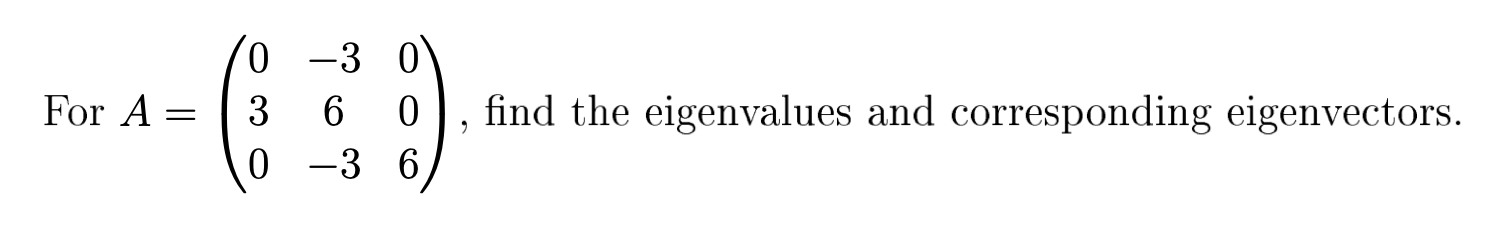 For A = 3 6 0 , find the eigenvalues and corresponding eigenvect...