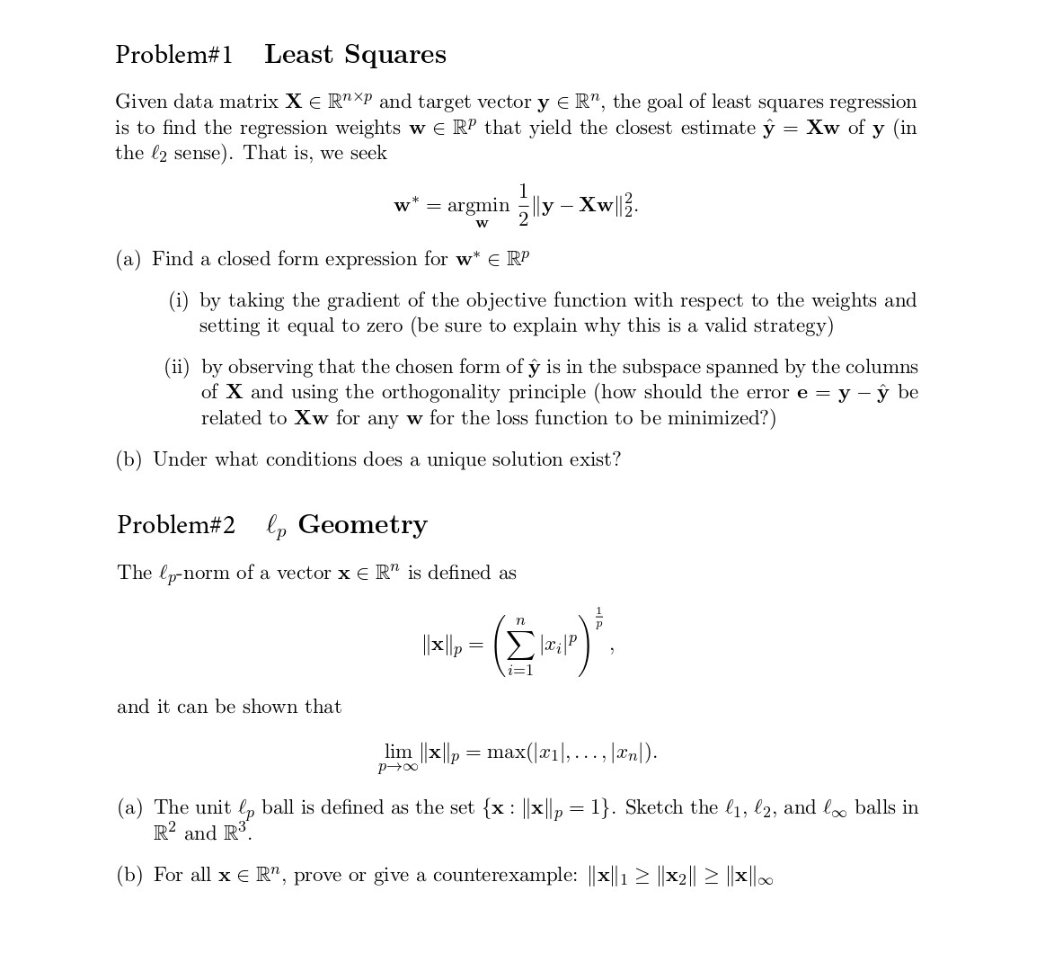 Problem#1 Least Squares Given data matrix X E Rnxp and target vect...