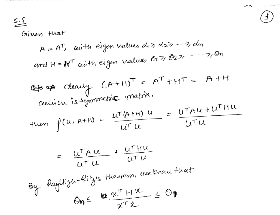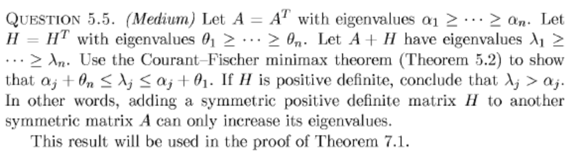 QUESTION 5.5. (Medium) Let A = AT with eigenvalues an an. Let H =...