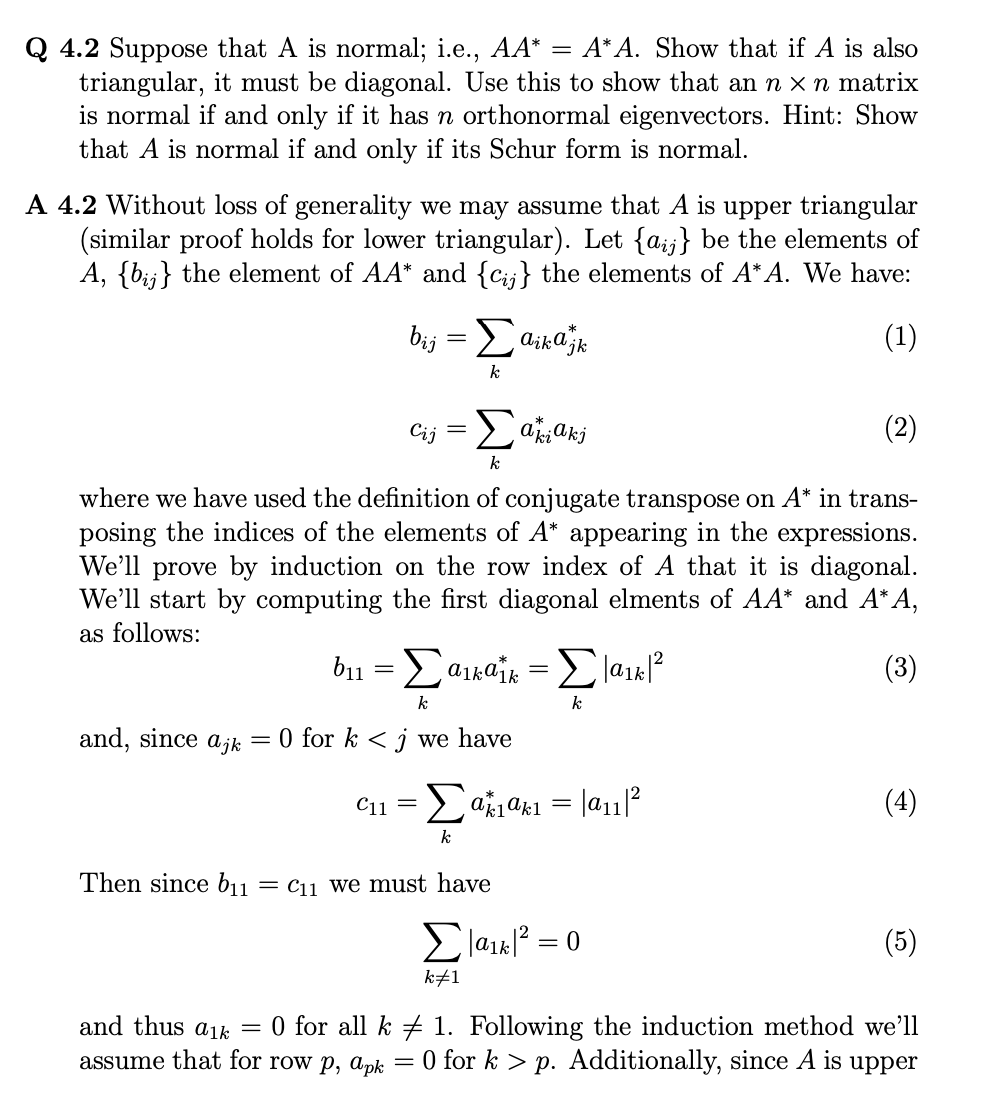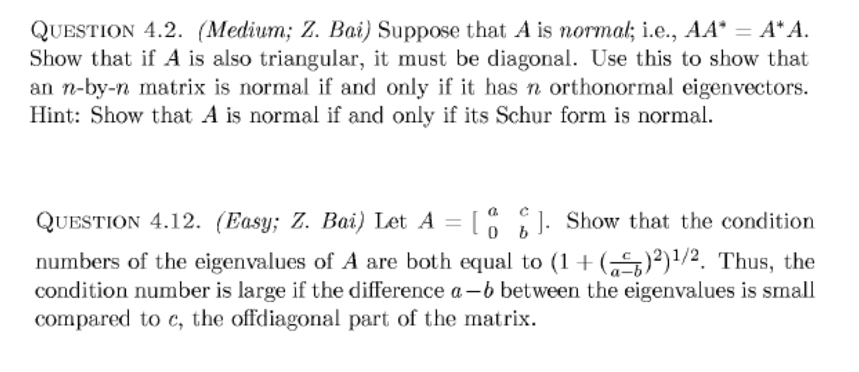 QUESTION 4.2. (Medium; Z. Bai) Suppose that A is normal; i.e., AA*...