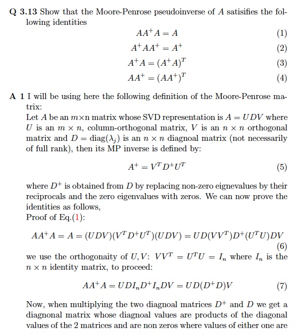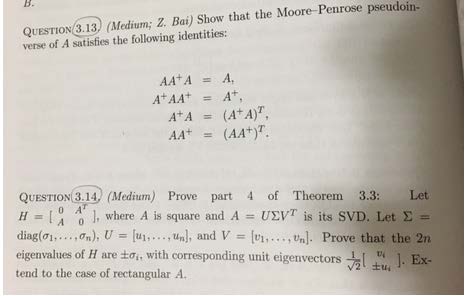 QUESTION 3.13 (Medium; Z. Bai) Show that the Moore-Penrose pseudoin...