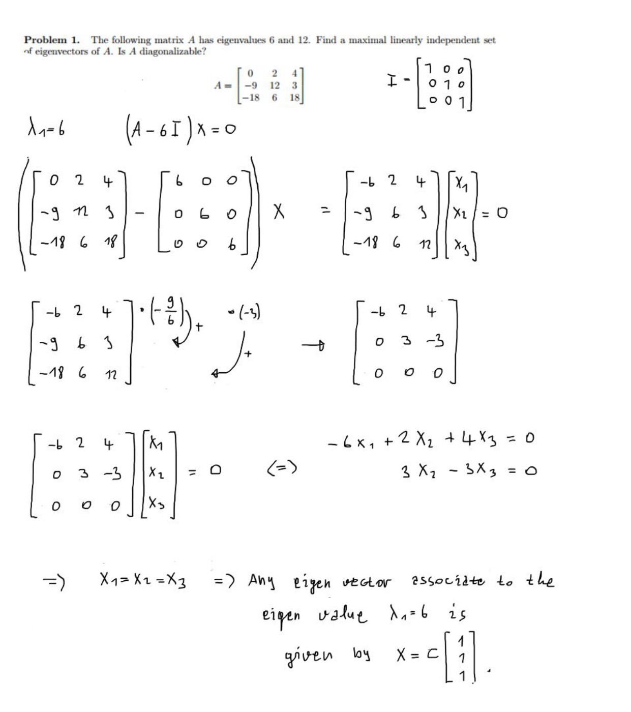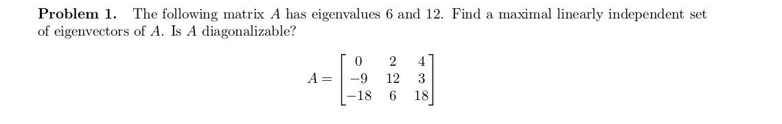 Problem 1. The following matrix A has eigenvalues 6 and 12. Find a...