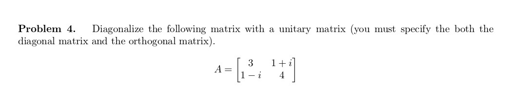 Problem 1. The following matrix A has eigenvalues 6 and 12. Find a ...