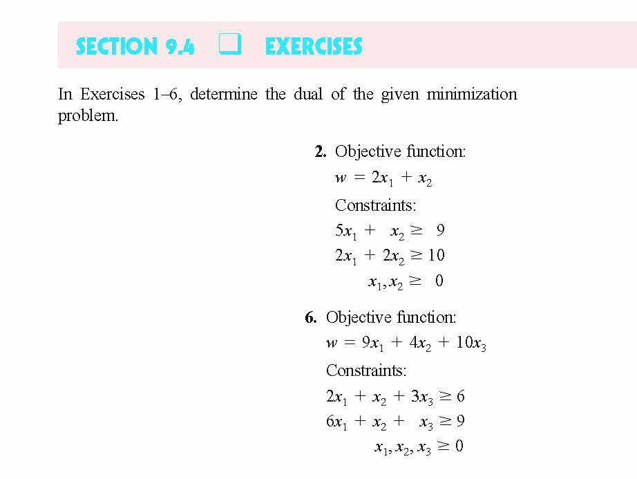 SECTION 9.4 EXERCISES Im Exercises 1-6. determine the dual of the...