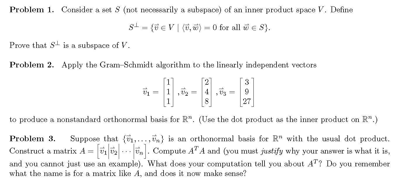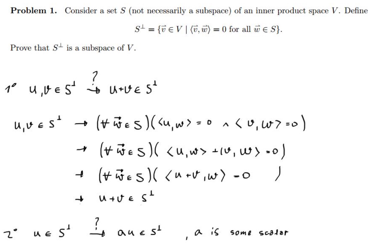 Problem 1. Consider a set S (not necessarily a subspace) of an inne...