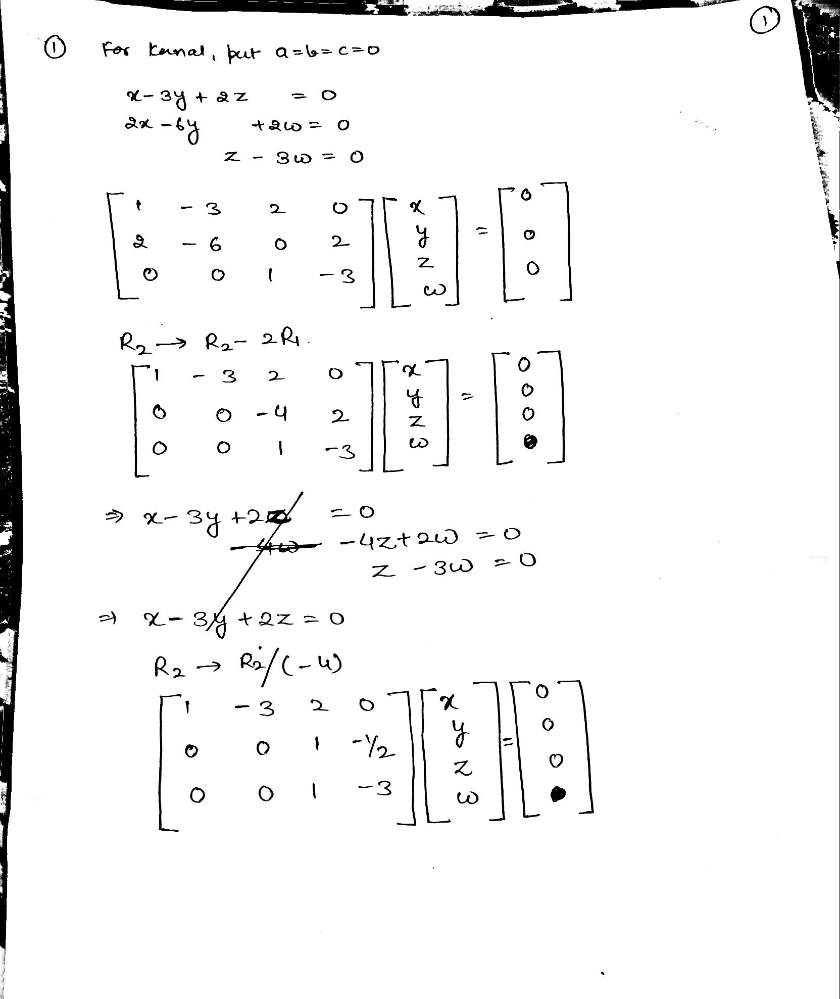 Problem 1: Find the kernel and range of the coefficient matrix for...