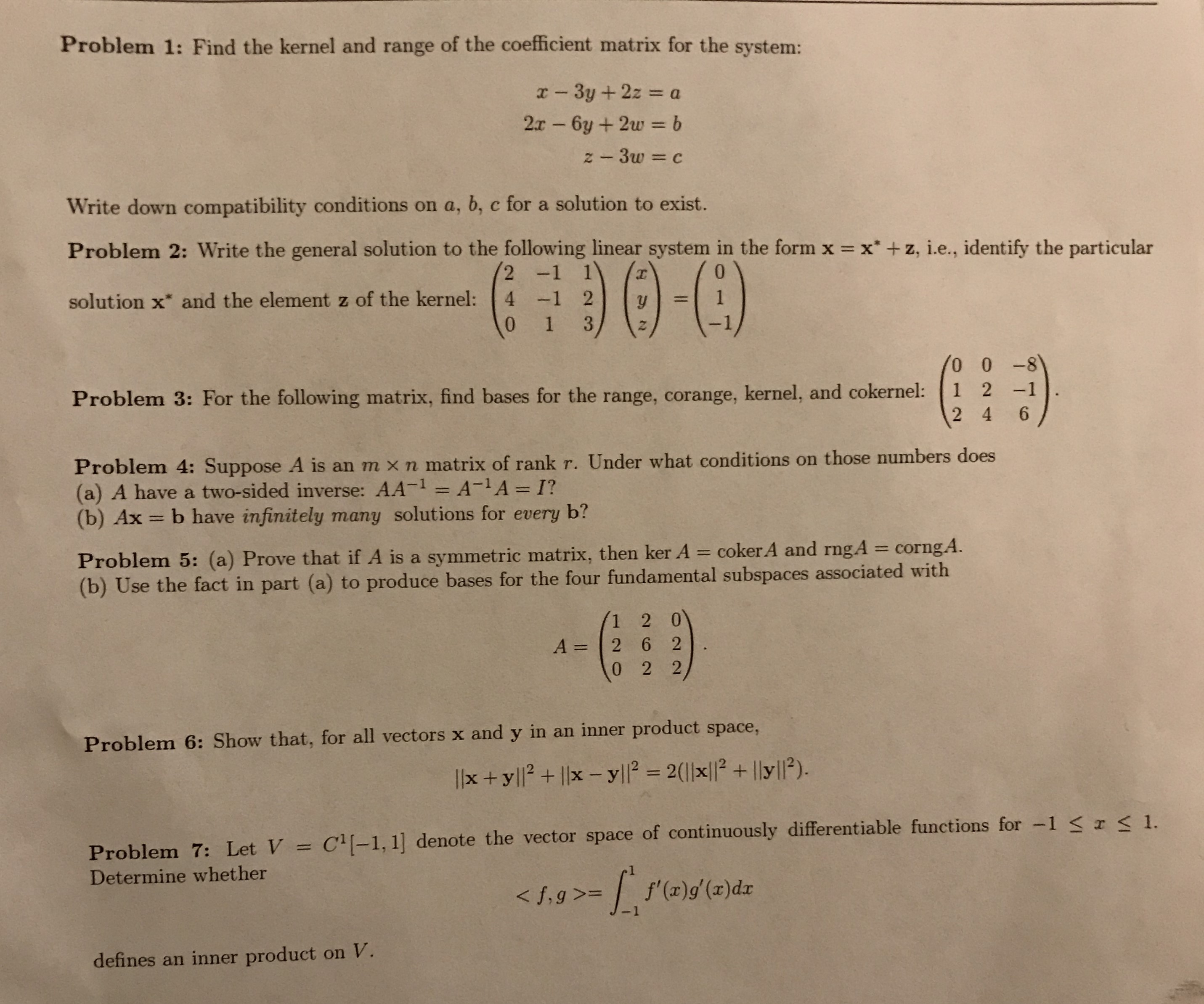 Problem 1: Find the kernel and range of the coefficient matrix for ...