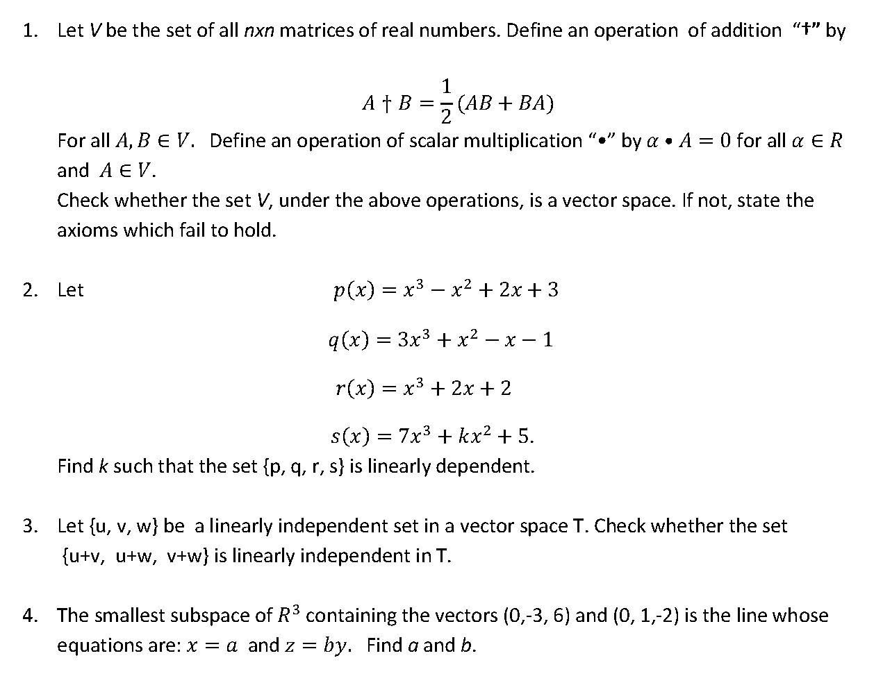 1. Let V be the set of all nxn matrices of real numbers. Define an...