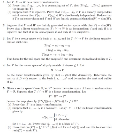 1. Let T : V W be a linear transformation (a) Prove that if Un i...