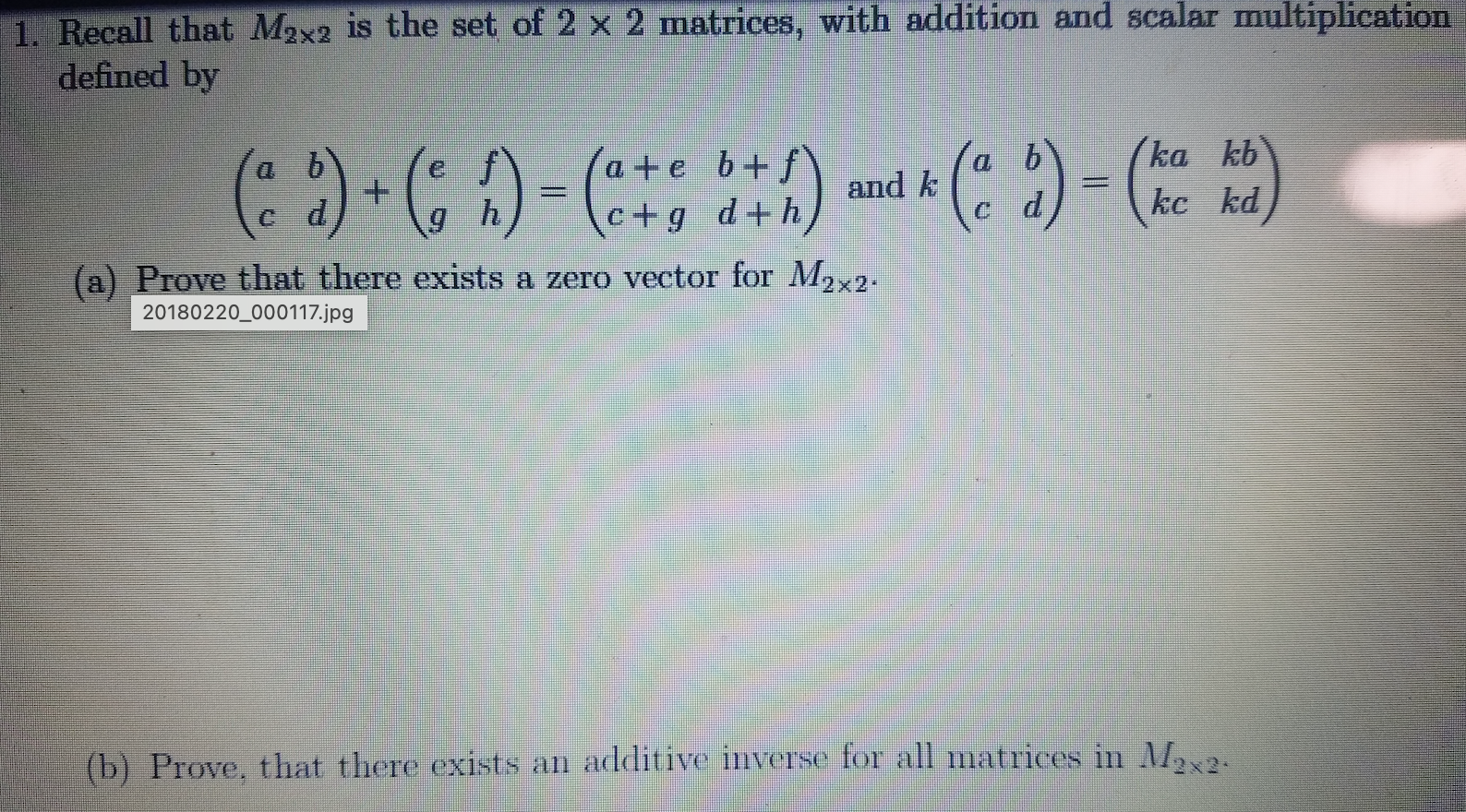 1. Recall that M2x2 is the set of 2 X 2 matrices, with addition and...