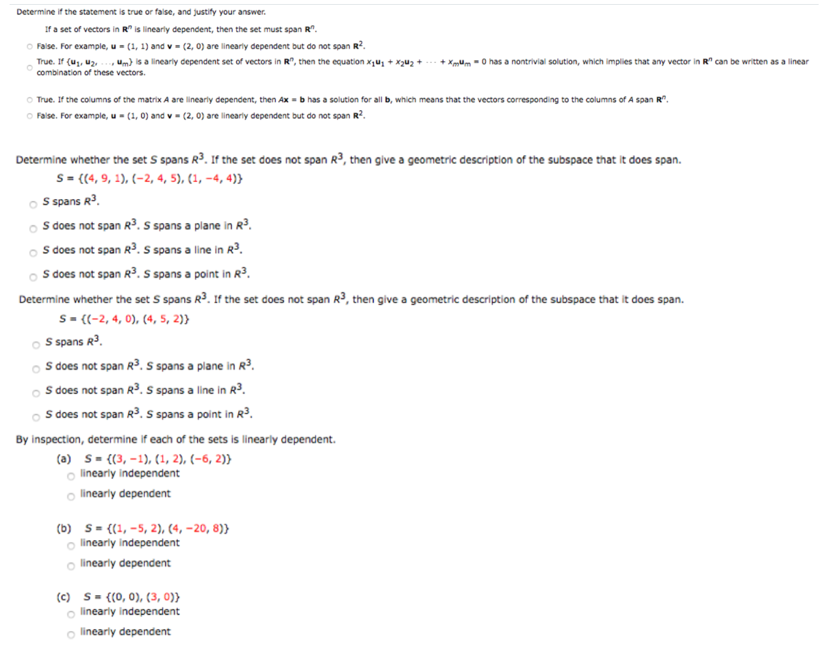 Determine whether the given set of vectors spans R². {(1, -1), ...
