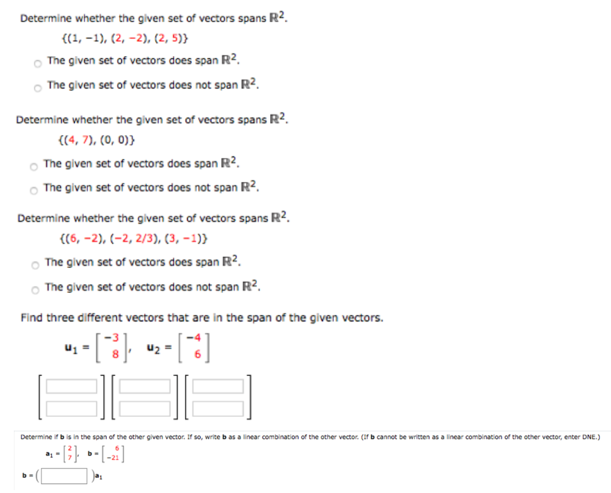 Determine whether the given set of vectors spans R². {(1, -1), (2...