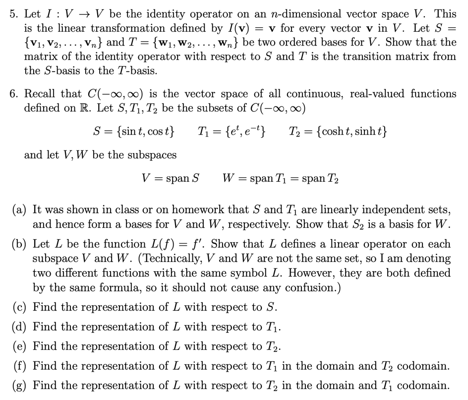 5. Let I : V V be the identity operator on an n-dimensional vector ...