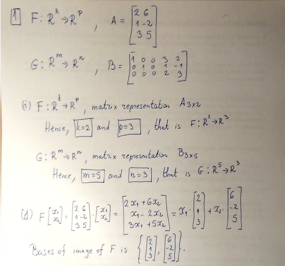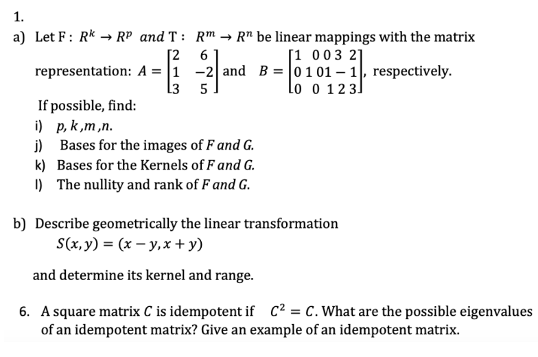 1. a) Let F : Rk RP and T : RT Rn be linear mappings with the matr...